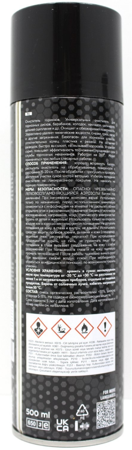 Универсальный очиститель для тормозных дисков, барабанов, колодок, накладок, цилиндров, деталей сцепления и др. Очищает и обезжиривает поверхность. Эффективно удаляет технические жидкости, смазки, грязь, нагар и другие загрязнения. Безопасен для тормозных шлангов,