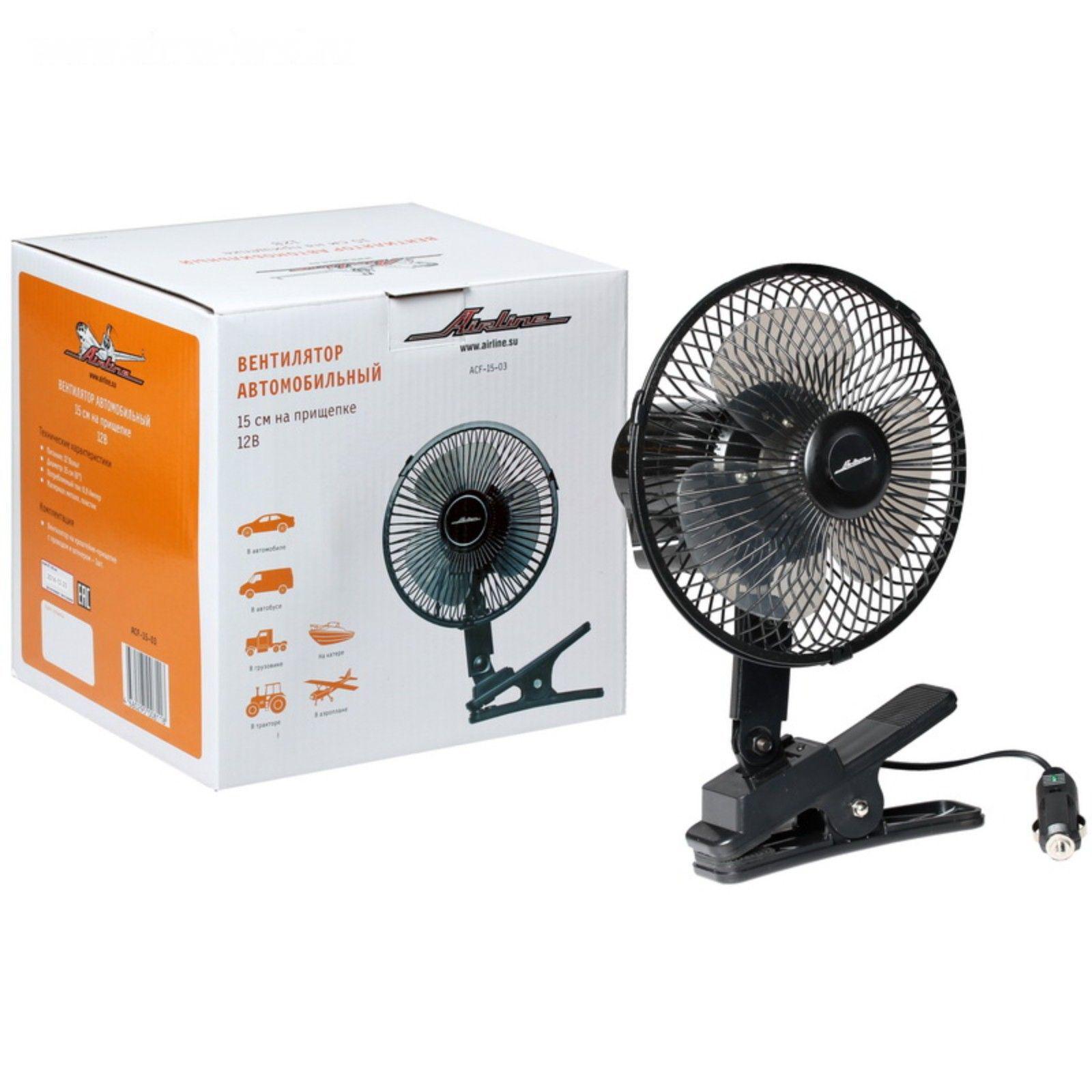 Вентилятор 15см с автоповоротом на прищепке металл 12В Airline ACF-15-03