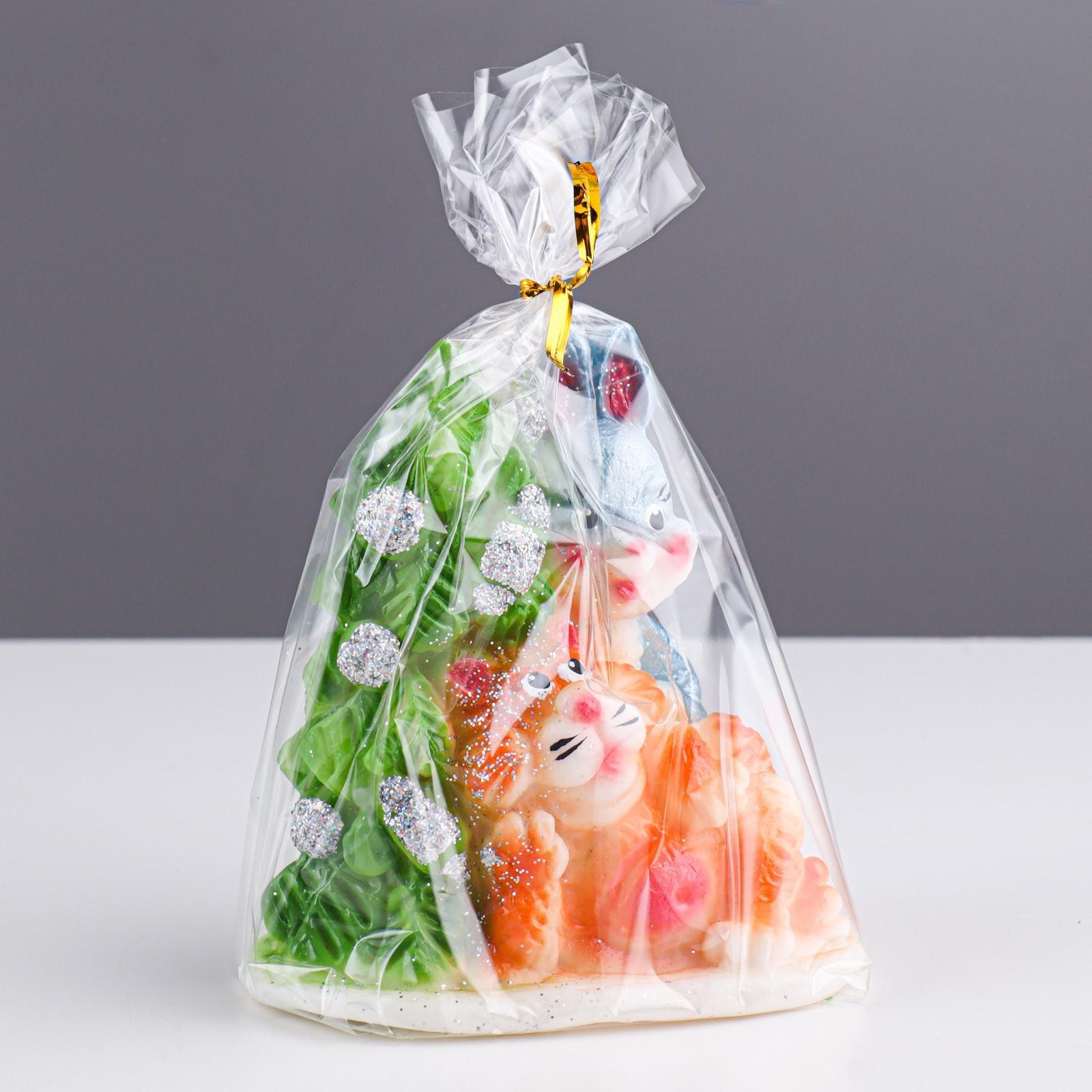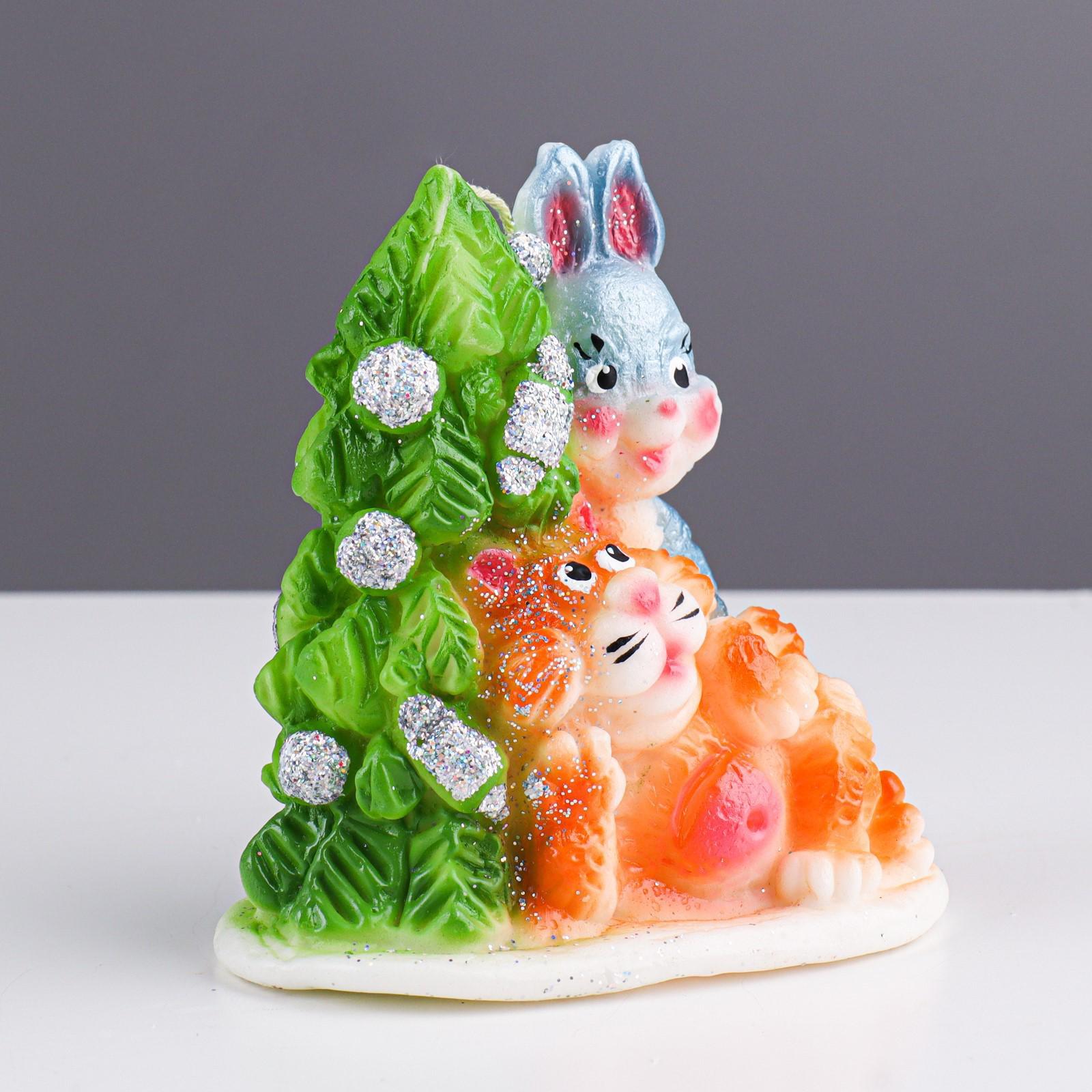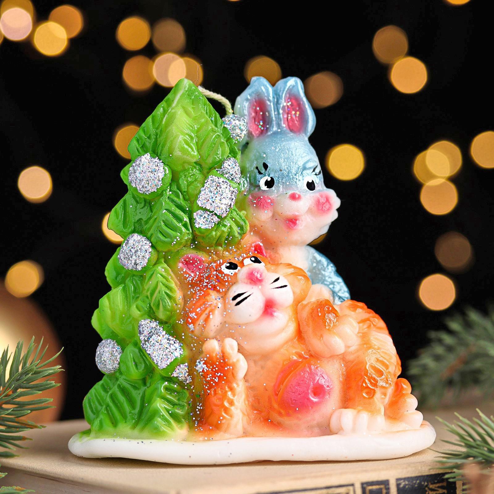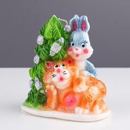 Свеча декоративная "Кролик и кот под ёлкой", 9,5х9х5,4 см, 82 г