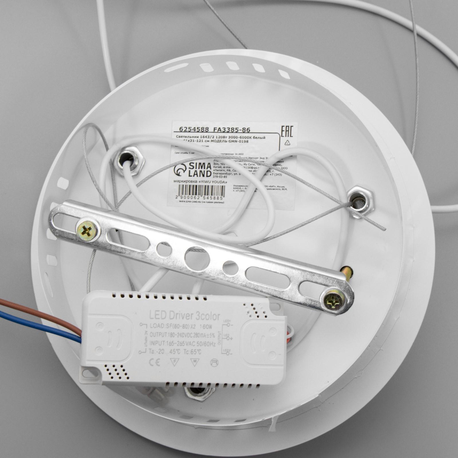 Светильник 1643/2 LED 120Вт 3000-6000К белый 41х41х21-121 см