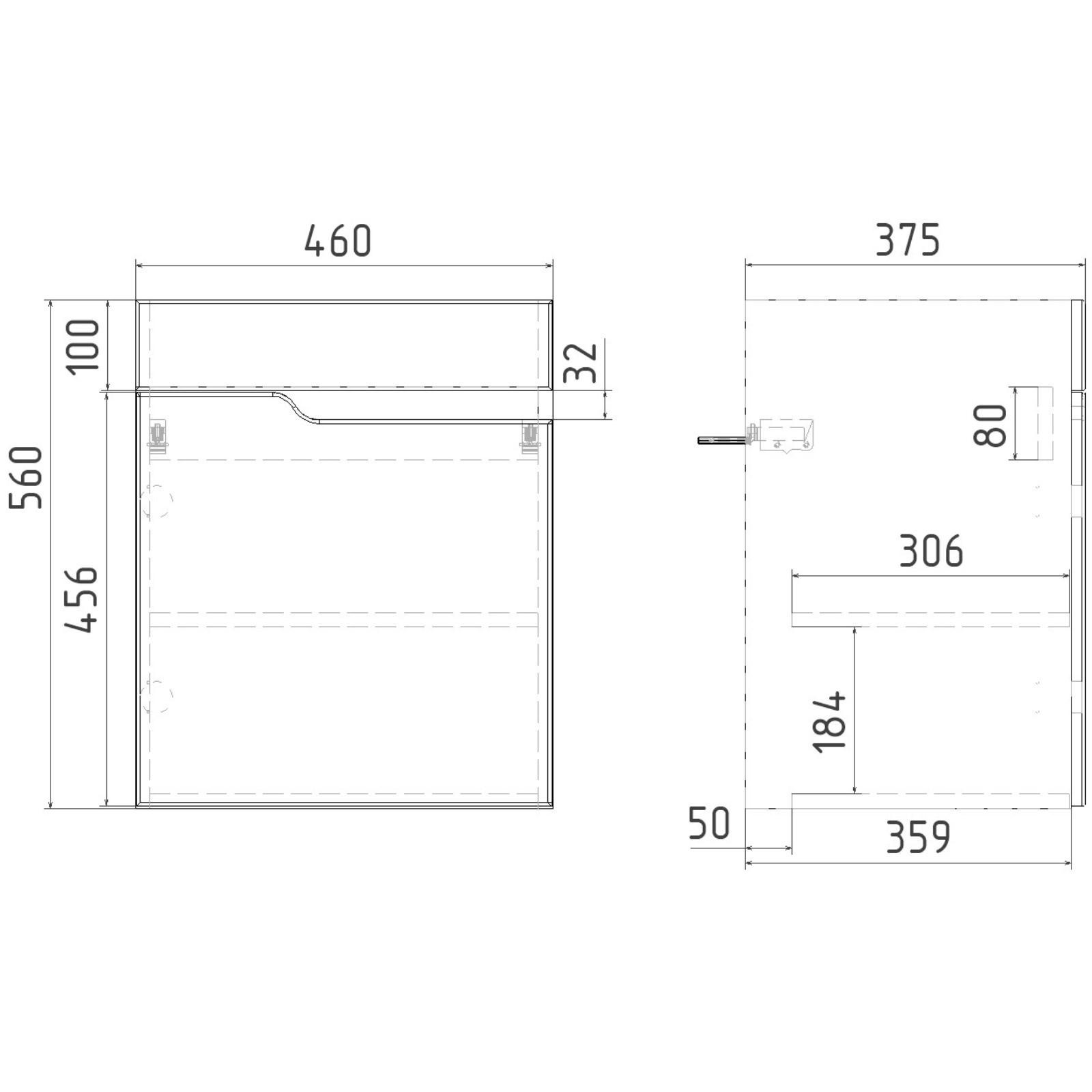 Тумба VIANT «Куба» 1 створка, подвесная, 380x460x560 мм, с раковиной COMO 50