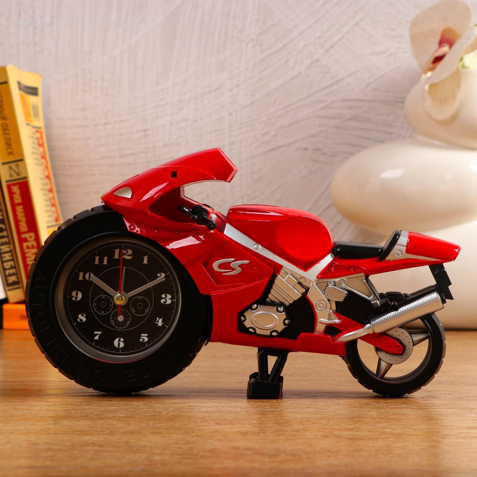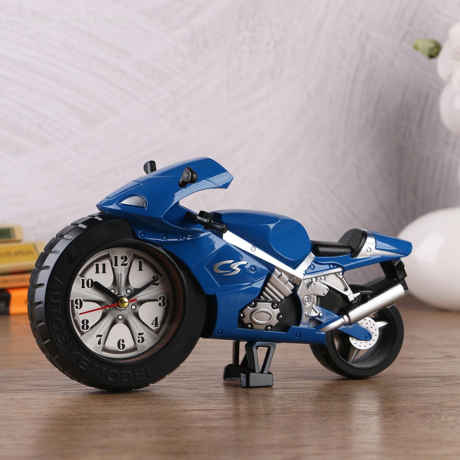Будильник "Байк", часы на колесе, 14 х 23 см, d=7 см, синий