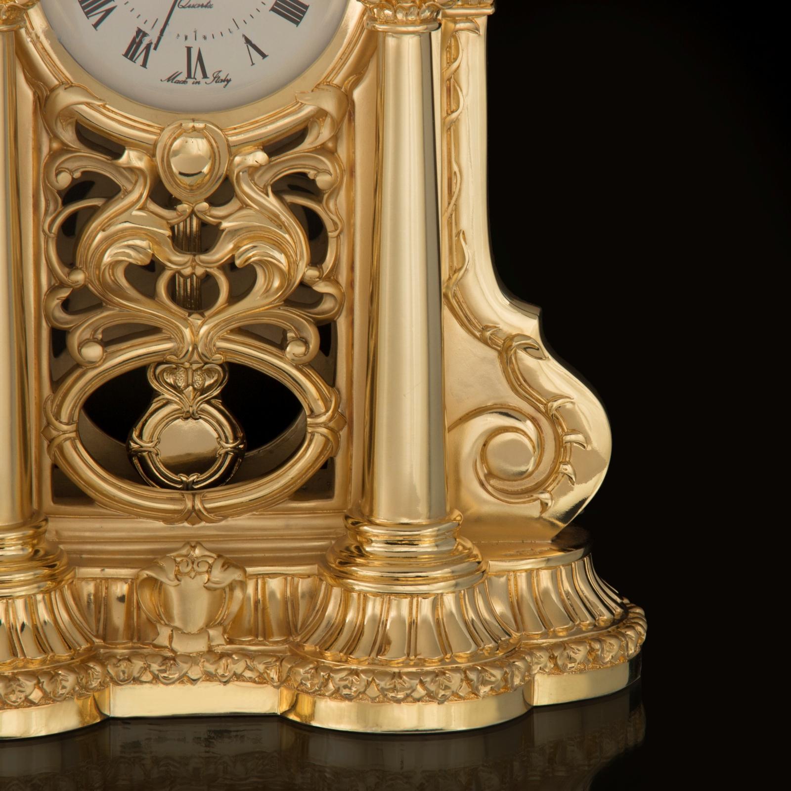 Невероятной красоты настольные часы «Аристократ» выполнены итальянскими мастерами фабрики Linea Argenti из высококлассных материалов. Посмотрите на их поистине королевский декор: кажется, будто они совсем недавно украшали дворец богатого властителя, а сейчас очутились прямо здесь, перед вами. Каждая золочёная деталь создает особые акценты изыска, а сами колонны производят эффект масштабности и гармонии. Преподнесите эти элитные часы своим партнёрам по бизнесу или коллегам в знак уважения и признательности.