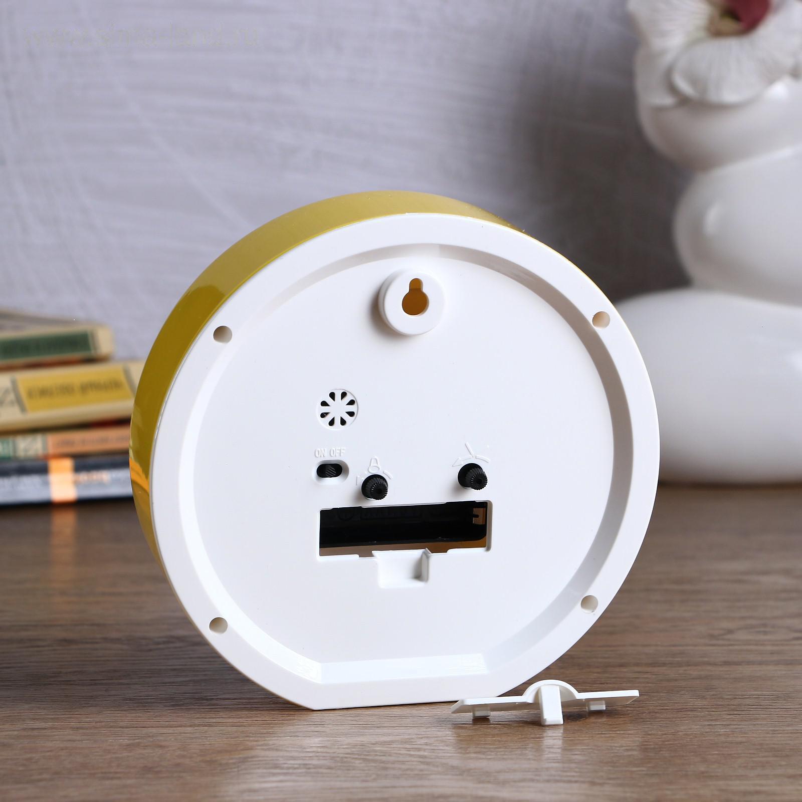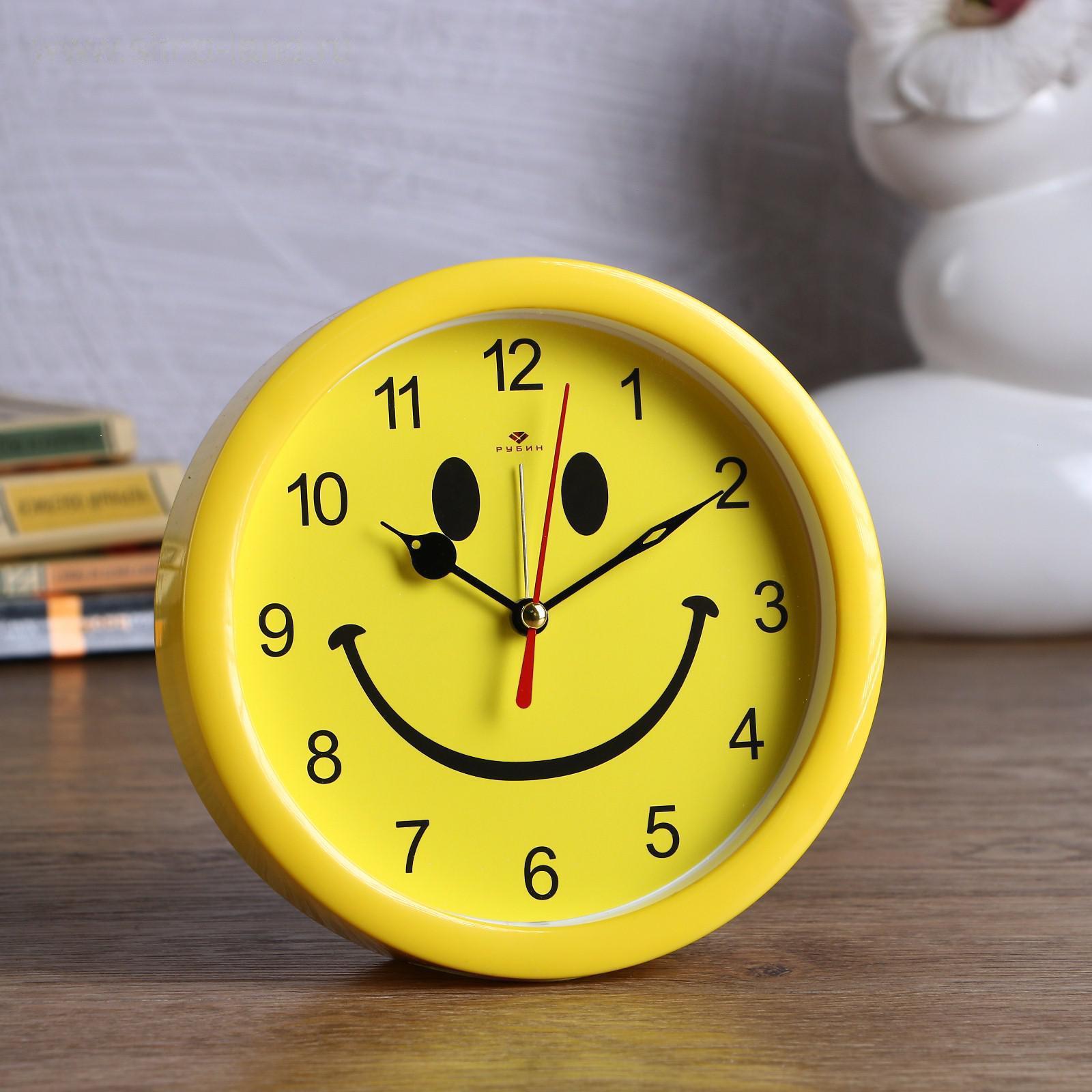 Будильник "Смайл", дискретный ход, d=15 см, желтый