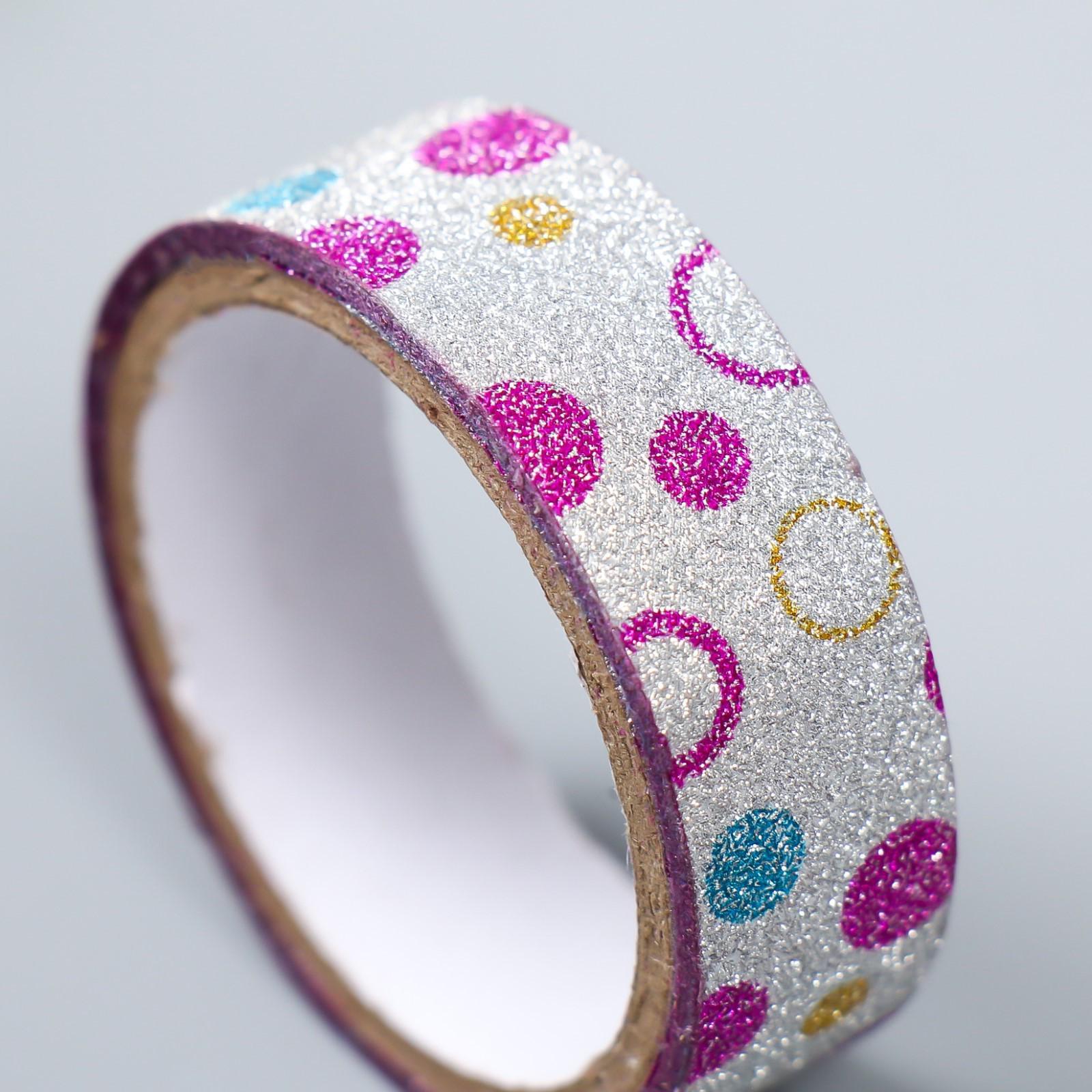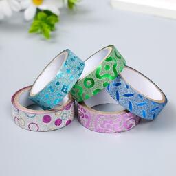 Клейкая лента декоративная пластик "Рисунки блеск" 1,5 см 3 метра МИКС