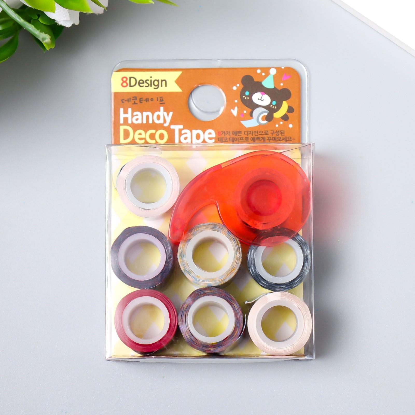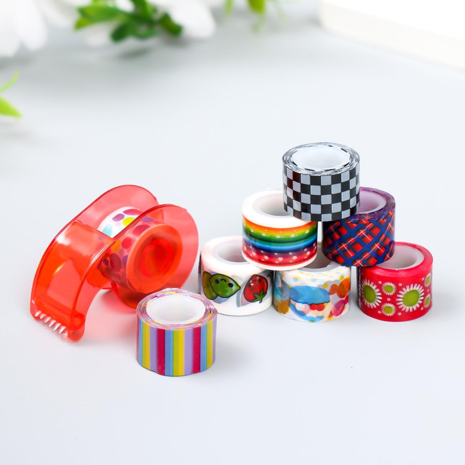 Клейкая лента декоративная с держателем (набор 8 шт) ширина 1,2 см длина 2,8 метра МИКС