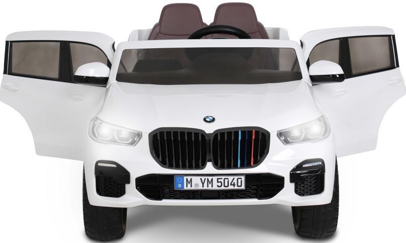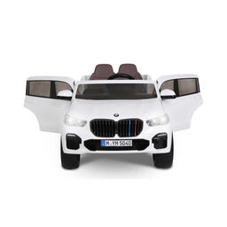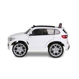 Двомісний дитячий позашляховик BMW X5М із системою заднього приводу. Дизайн електромобіля виконаний у стилі BMW X5M за ліцензійного згодою Bayerische Motoren Werke AG. Просторий салон, мотори у зв'язці з 12V-акумулятором забезпечать відмінну прохідність. Колеса з EVA-гуми, амортизатори, плавний розгін, 2 комфортні сидіння з еко-шкіри з ременями безпеки. В автомобілі передбачено водійське та дистанційне керування. Пульт управління (2,4G) дозволяє батькам контролювати швидкість, напрямок руху і зупинити машину кнопкою «STOP». Педаль акселератора працює за принципом прогресивного набору швидкості: що глибше натискаєш, то швидше прискорюєшся. Музичне кермо, МР3-плеєр з USB-входом піднімуть малюкові настрій. Яскрава світлодіодна оптика забезпечить впевненість та безпеку у вечірній час. Завдяки просторому салону з роздільними сидіннями, кататися на машинці зможуть одразу двоє діток від 3 до 8 років.