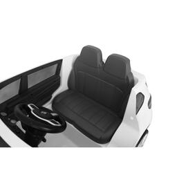 Управління рульове та пультом Bluetooth 2,4G. Привід 2WD. Два просторі сидіння з еко-шкіри. М'які безшумні EVA-колеса. Паски безпеки. Плавний розгін та гальмування. Амортизатори. Двері відчиняються. Кнопка "Старт", звук двигуна при заводі. Музичне кермо. USB та Micro SD входи. Регулятор гучності. Фари, габаритні вогні. Підсвічування панелі приладів. Індикатор заряду акумулятора.