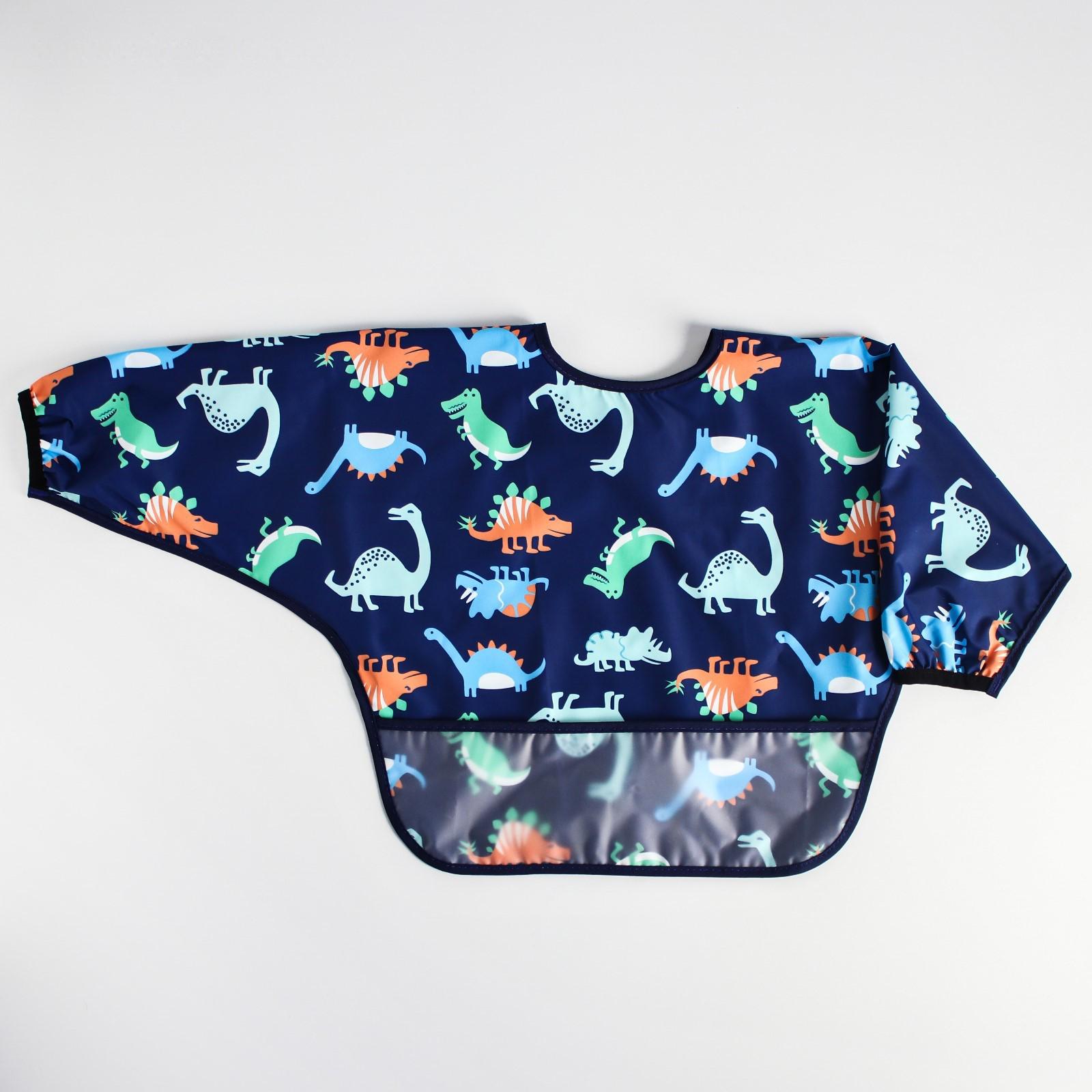 Фартук-нагрудник непромокаемый с рукавами и карманом «Динозавры»