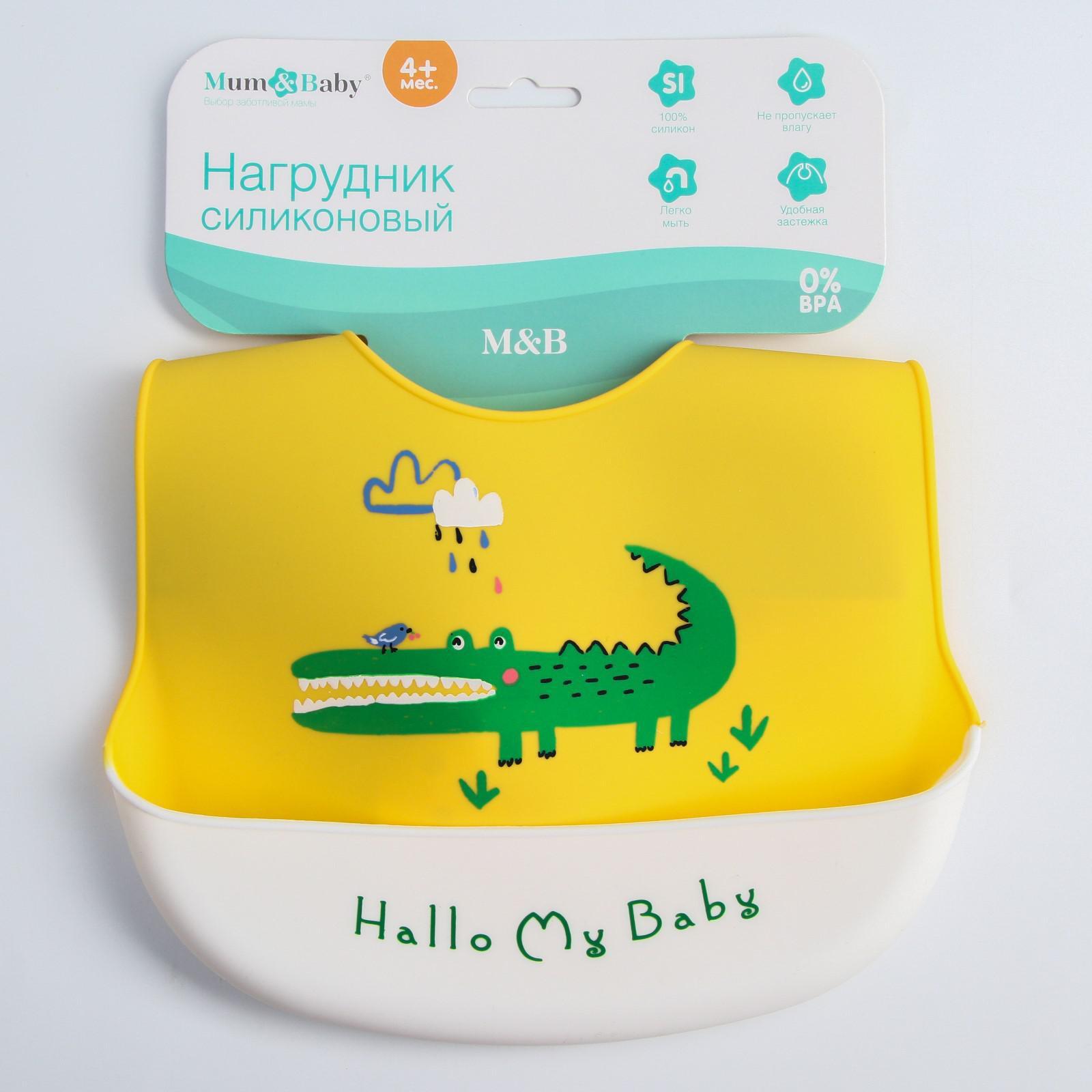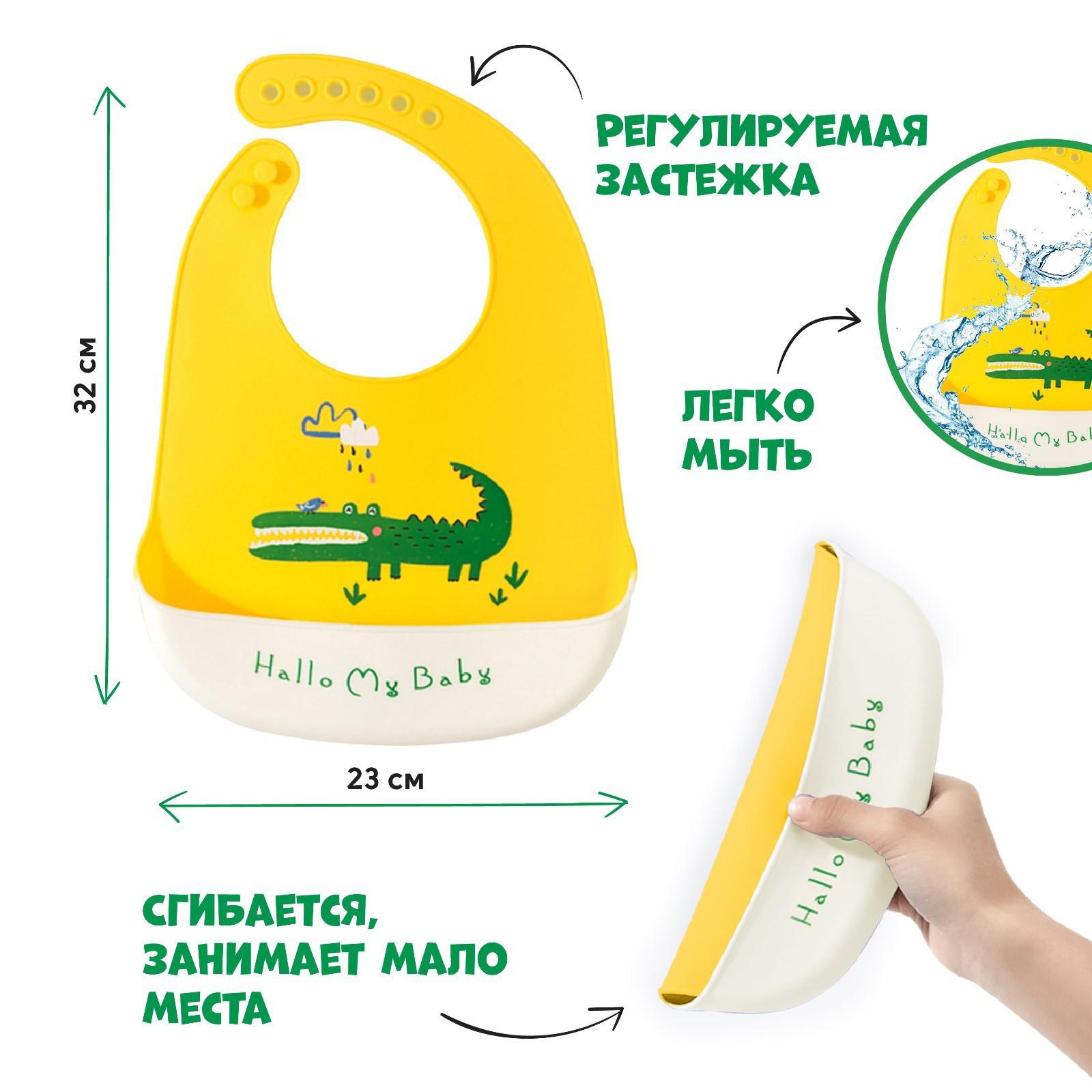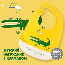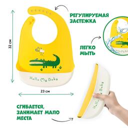 Нагрудник силиконовый, на кнопках, с карманом «Крокодил», цвет желтый/белый
