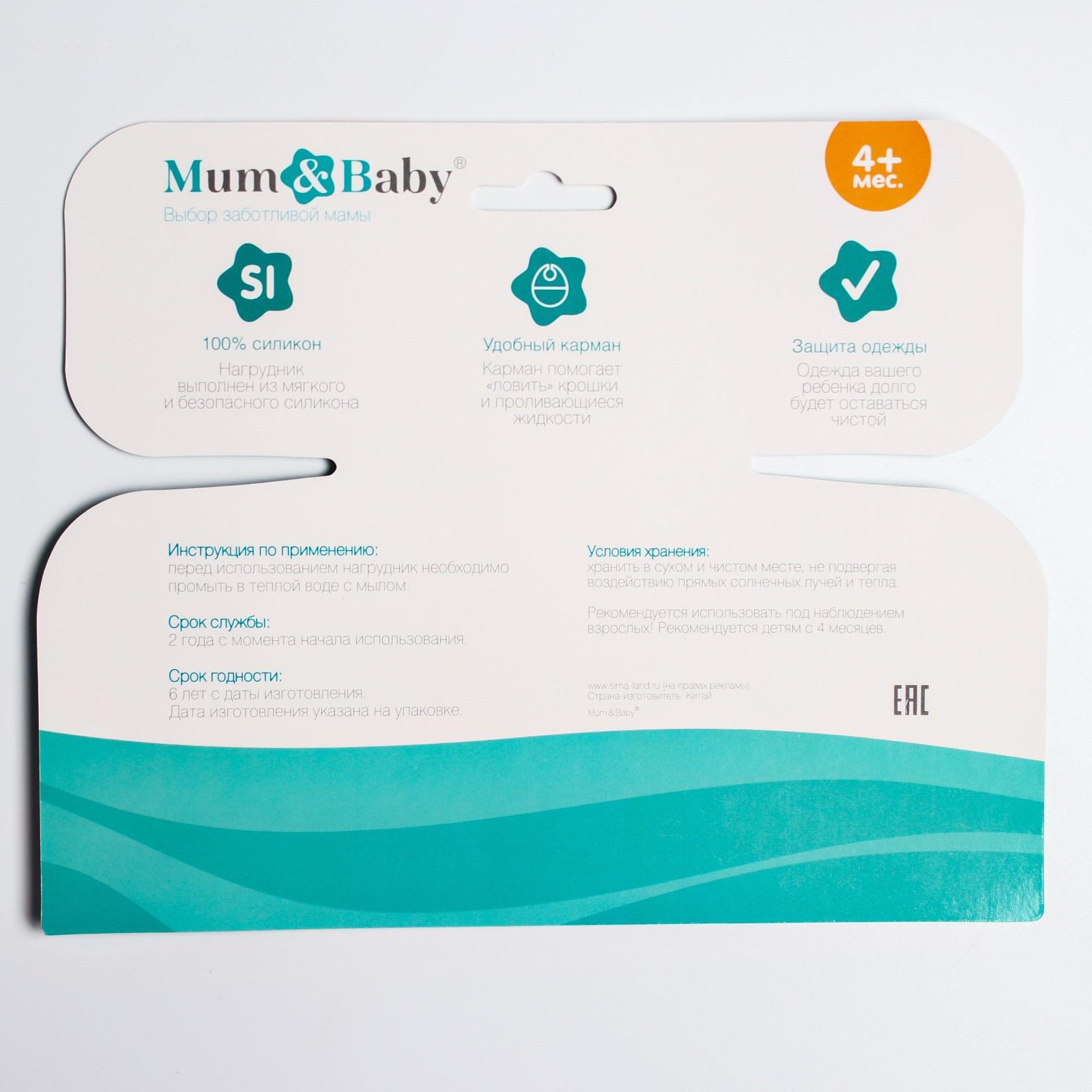 Товар изготовлен из силикона, не содержащего токсичных веществ. После использования мойте тёплой мыльной водой. Нагрудник рекомендован для детей старше 4 месяцев.