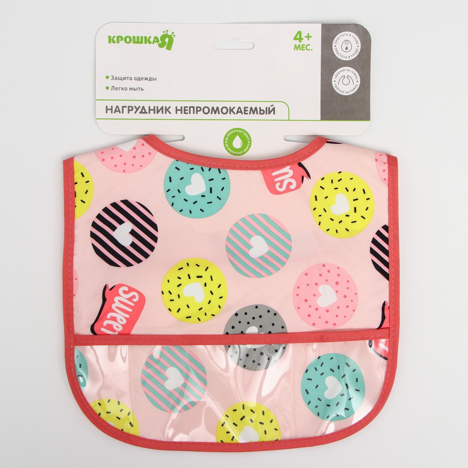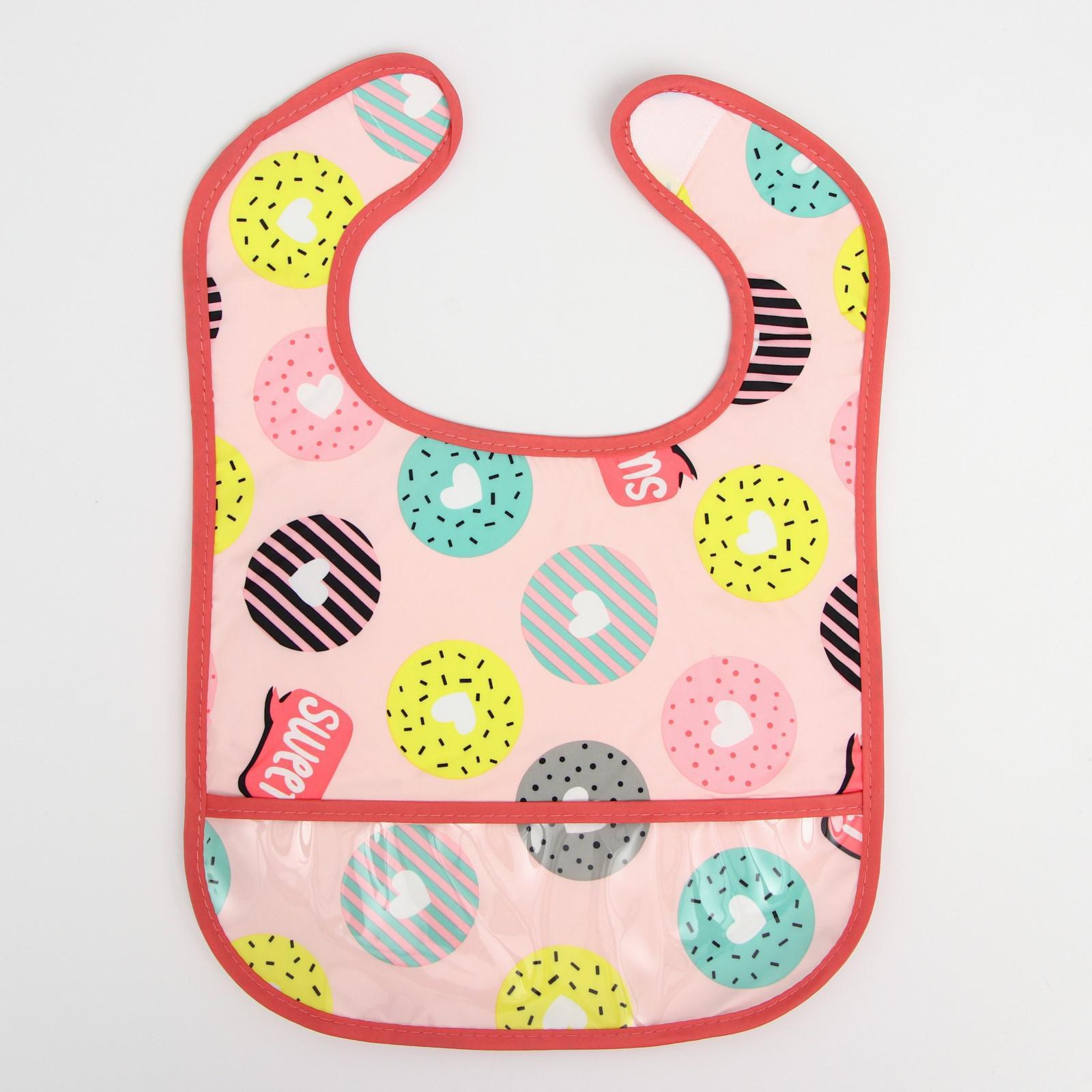 Нагрудник детский непромокаемый, с карманом «Пончики»