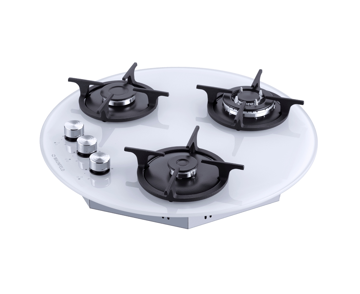 Оригинальная круглая встраиваемая газовая варочная панель на 3 конфорки шириной 54 см идеальное решение для угловой столешницы. Может работать от магистрального газа и газа в баллоне (тип G30), для этого достаточно поставить специальные жиклеры французской фирмы SOURDILLON, находящиеся в комплекте.