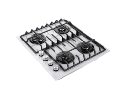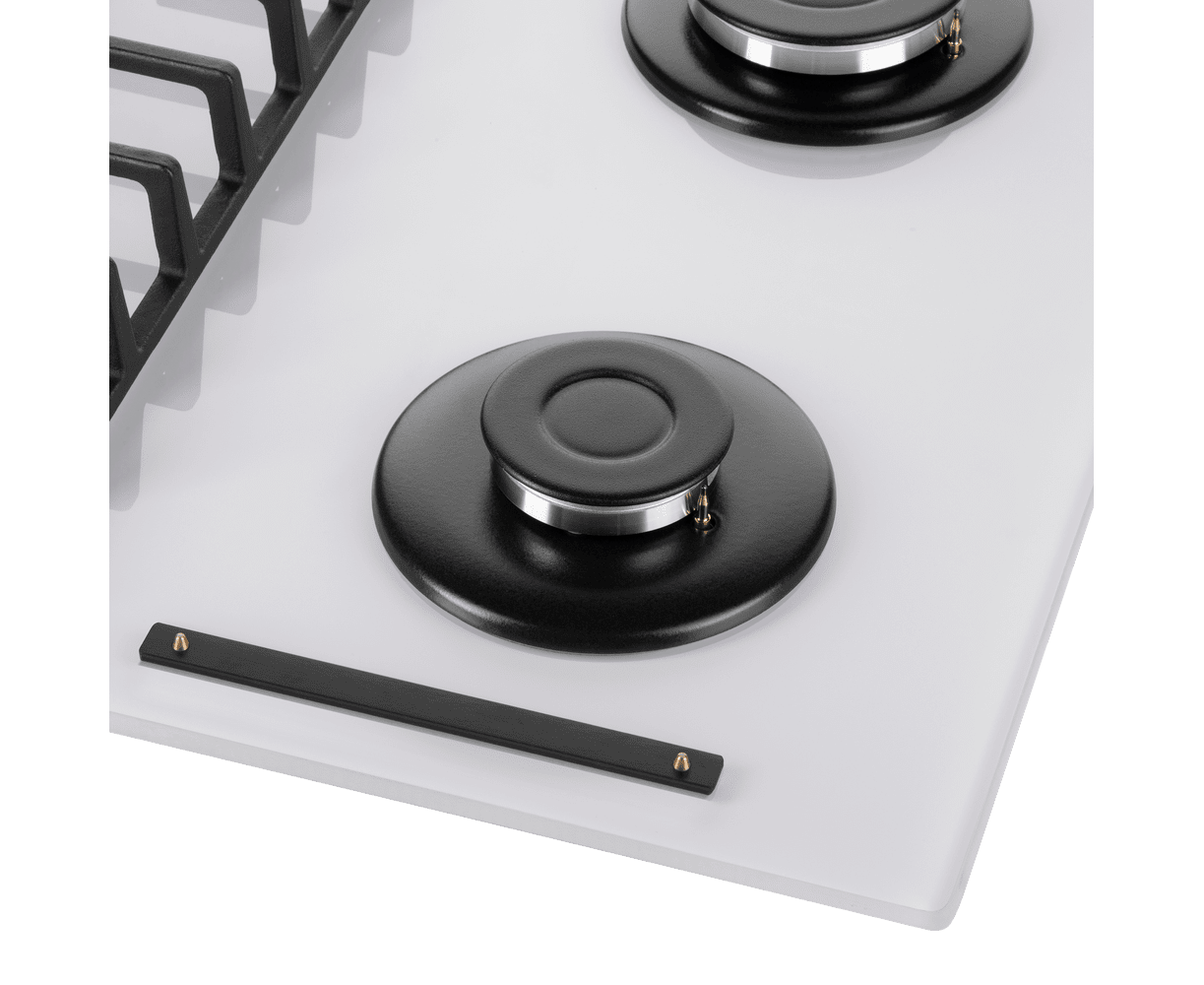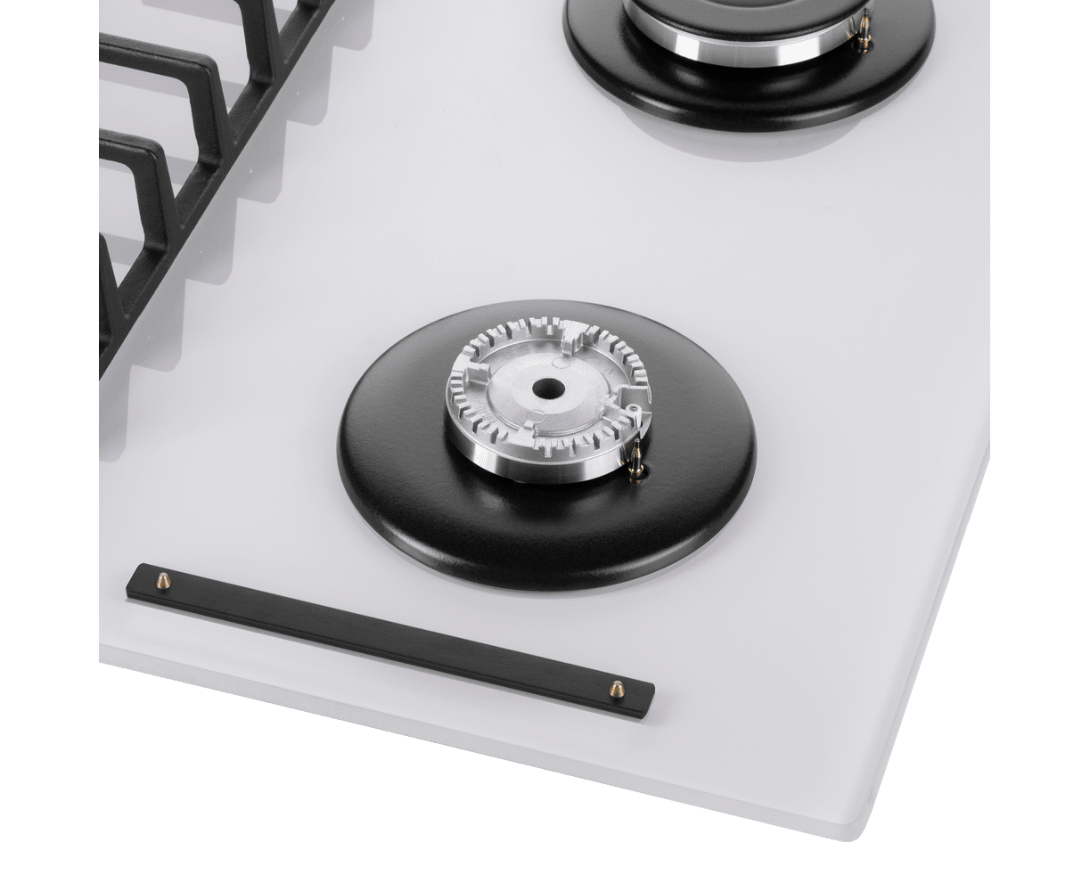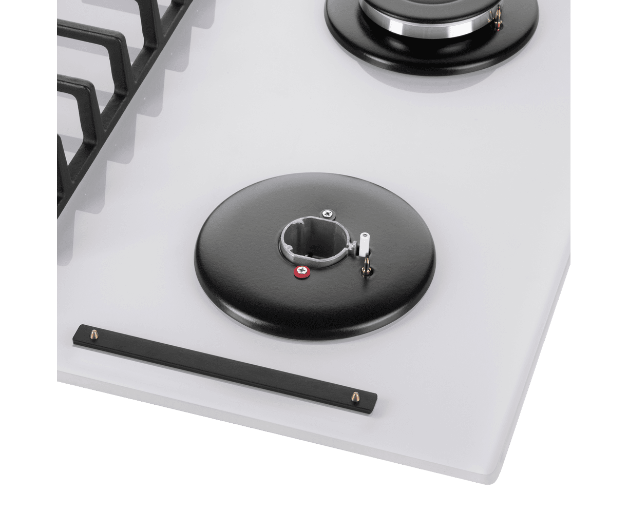 Панель выполнена из закаленного стекла черного цвета. В данной модели установлены высококачественные итальянские горелки SABAF (4 конфорки). Четыре стандартные конфорки мощностью 1000 Вт, 1700 Вт, 1700 Вт и 2600 Вт спроектированы таким образом, что огонь не перегревает ни чугунные решетки, ни ручки управления.