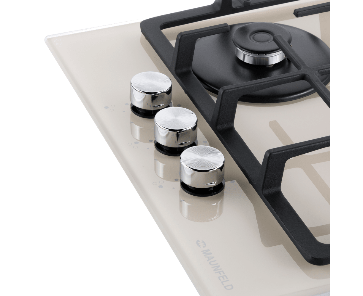 Бежевая встраиваемая газовая варочная панель MAUNFELD EGHG.43.33CBG/G подойдет для кухни любого стиля. Универсальность цвета беж – отличительная черта, в котором исполнена данная модель. Панель из закаленного прочного стекла оснащена тремя газовыми конфорками SABAF (Италия). Для быстрого приготовления пищи или ее разогрева в посуде с плоским или вогнутым дном подойдет сверхмощная WOK-конфорка (3000 Вт). Решетка выполнена из долговечного прочного чугуна. Автоматический электроподжиг, встроенный в цельнометаллические поворотные ручки-переключатели, упрощает пользование MAUNFELD EGHG.43.33CBG/G. Система газ-контроль прекращает подачу газа и останавливает работу устройства при случайном затухании пламени. Для перехода на газ в баллоне можно использовать сменные французские жиклеры SOURDILLON, поставляющиеся в комплекте с моделью.