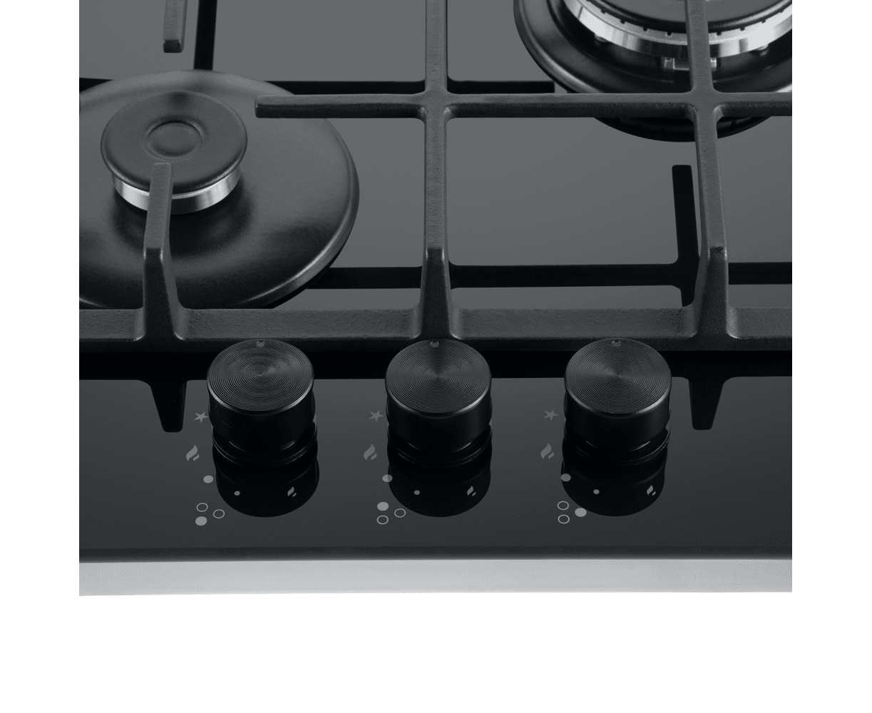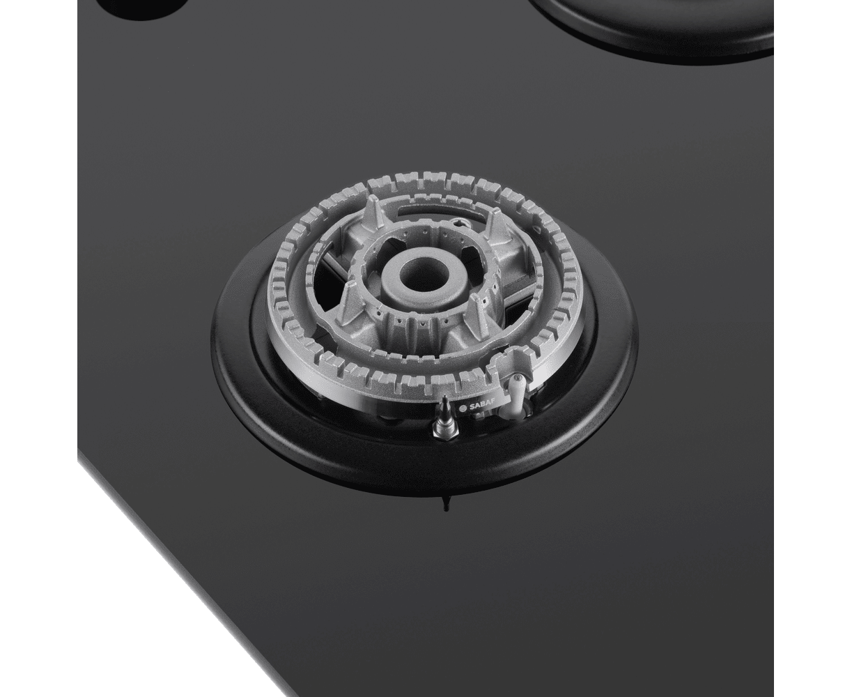 Панель из закаленного прочного стекла оснащена тремя газовыми конфорками SABAF (Италия). Для быстрого приготовления пищи или ее разогрева в посуде с плоским или вогнутым дном подойдет сверхмощная WOK-конфорка (3000 Вт).