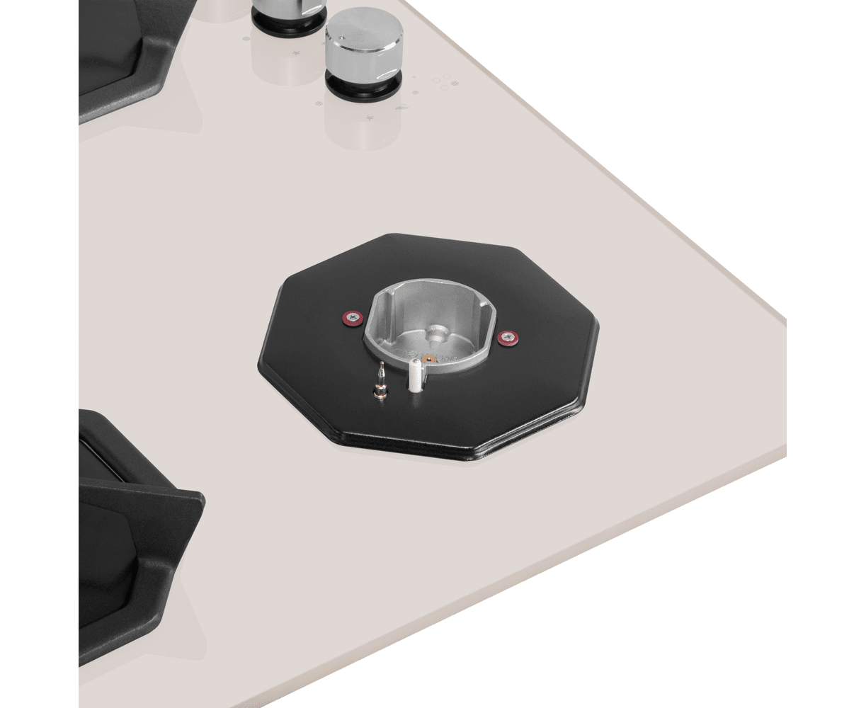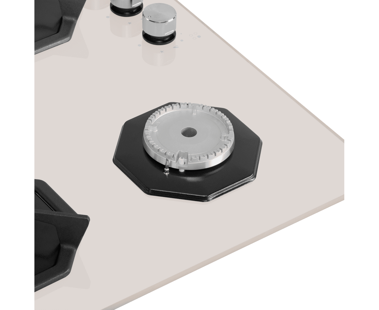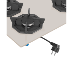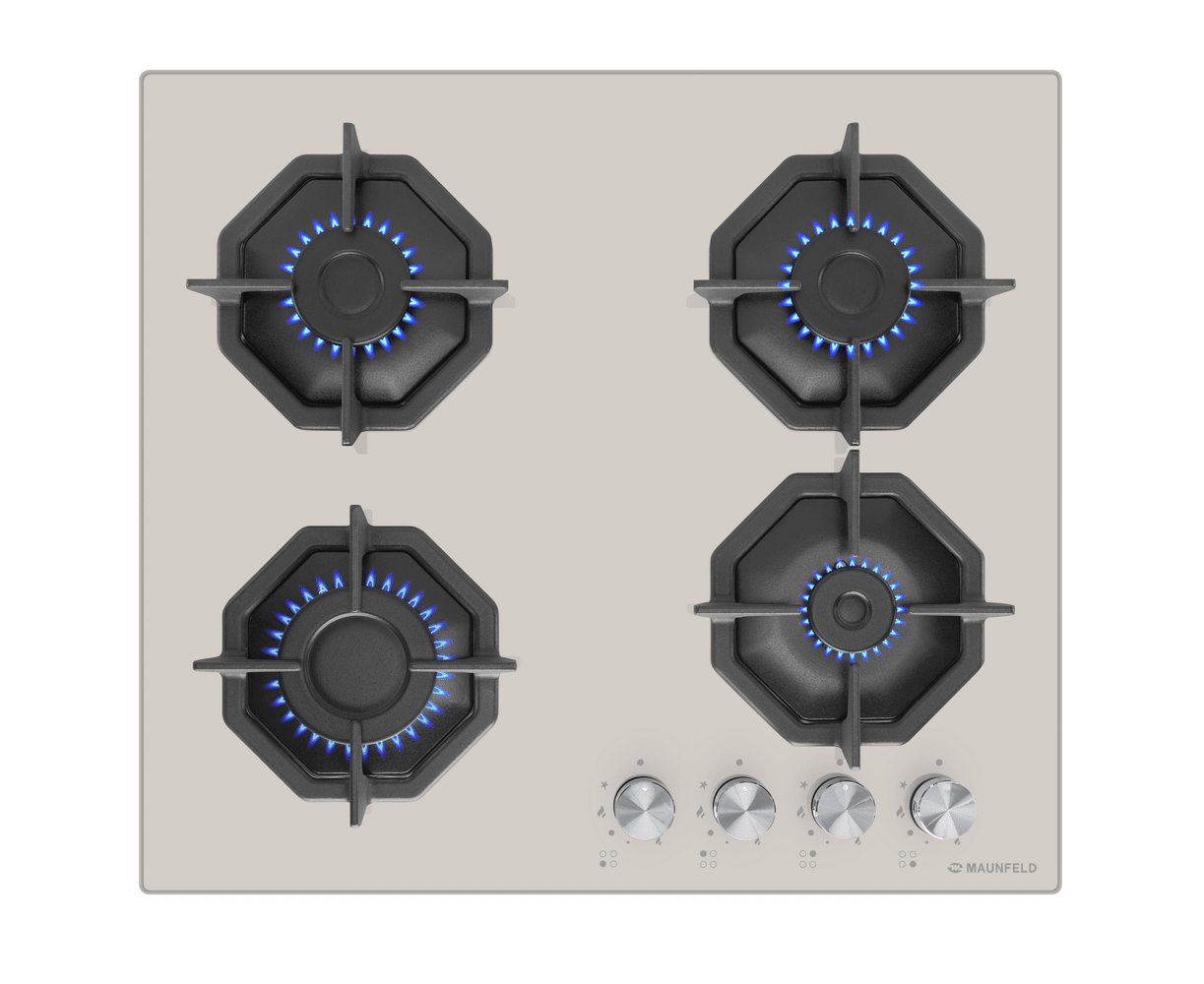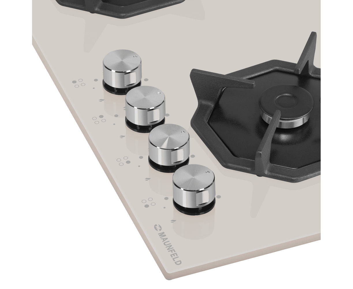 Дизайнерская встраиваемая газовая варочная панель на 4 конфорки шириной 60 см может работать от магистрального газа и газа в баллоне (тип G30), для этого достаточно поставить специальные жиклеры французской фирмы SOURDILLON, находящиеся в комплекте. Панель выполнена из закаленного стекла черного цвета. В данной модели установлены высококачественные итальянские горелки SABAF (4 конфорки). Четыре стандартные конфорки мощностью 1000 Вт, 1700 Вт, 1700 Вт и 2600 Вт. Регулирование подачи газа и электроподжиг конфорок происходит с помощью поворотных регуляторов - полнотелых цельнометаллических ручек. Для простоты использования около каждой ручки нанесены информационные изображения: используемая конфорка, подача газа выключена, электроподжиг, максимальное пламя и минимальное пламя. Восьмиугольные чугунные подставки – это запатентованное изобретение MAUNFELD, прочные и долговечные. Сами конфорки спроектированы таким образом, что огонь не перегревает ни чугунные решетки, ни ручки управления. Система газ-контроля надежно защищает бытовой прибор от утечек газа при неожиданном затухании конфорки.