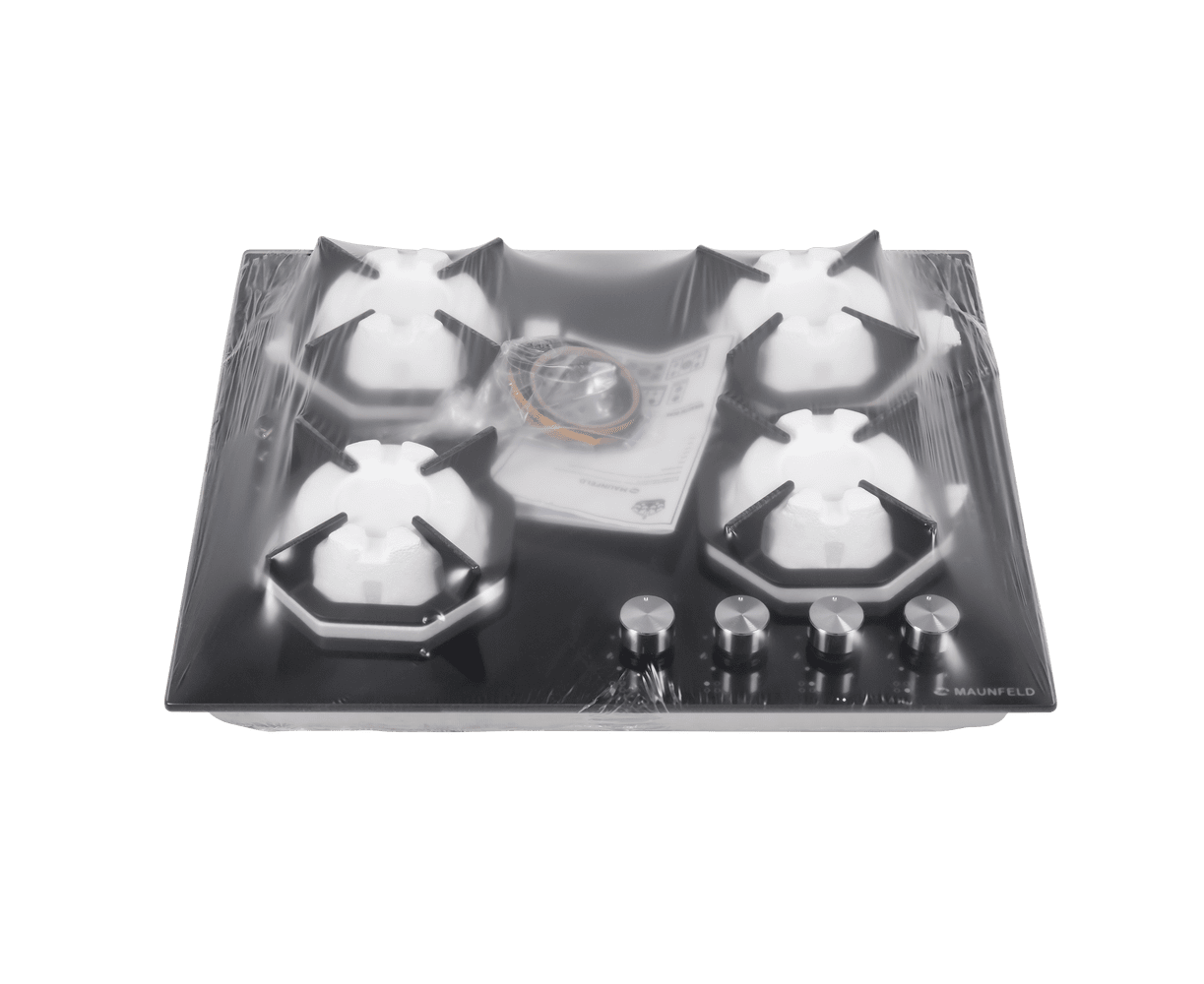 Восьмиугольные чугунные подставки – это запатентованное изобретение MAUNFELD, прочные и долговечные. Сами конфорки спроектированы таким образом, что огонь не перегревает ни чугунные решетки, ни ручки управления.