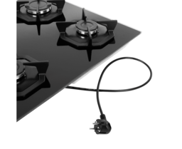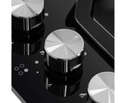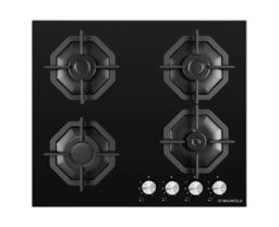 Панель выполнена из закаленного стекла черного цвета. В данной модели установлены высококачественные итальянские горелки SABAF (4 конфорки). Четыре стандартные конфорки мощностью 1000 Вт, 1700 Вт, 1700 Вт и 2600 Вт.