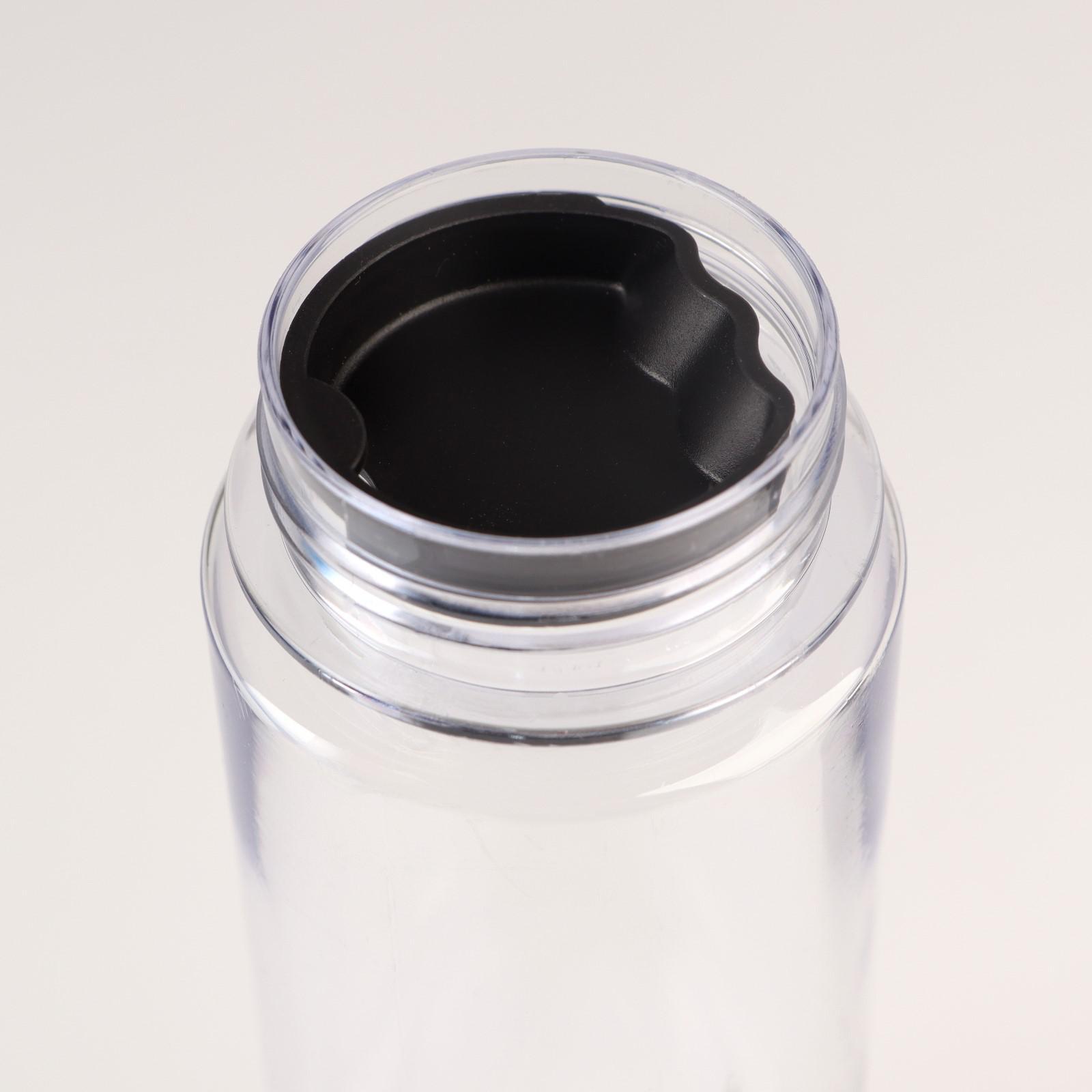 Бутылку для жидкости можно брать с собой в спортзал, на прогулку, пикник или работу, благодаря особой форме она удобно лежит в руке. Оптимальный объём даст возможность с комфортом провести тренировку или прогуляться. Крышка плотно закрывает ёмкость, а прозрачные стенки позволяют контролировать запас содержимого.