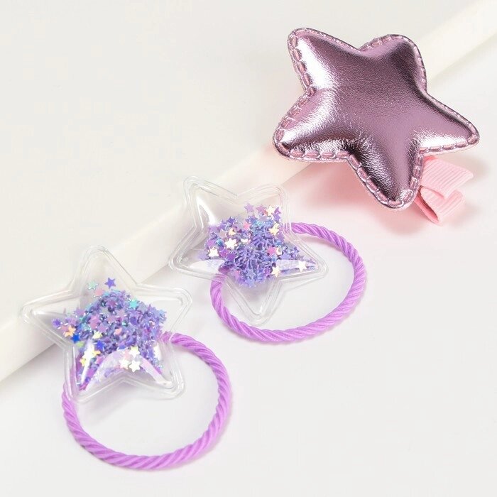 Набор для волос: резинка и заколка фиолетовая "Звездочки", My Little Pony, 3 шт