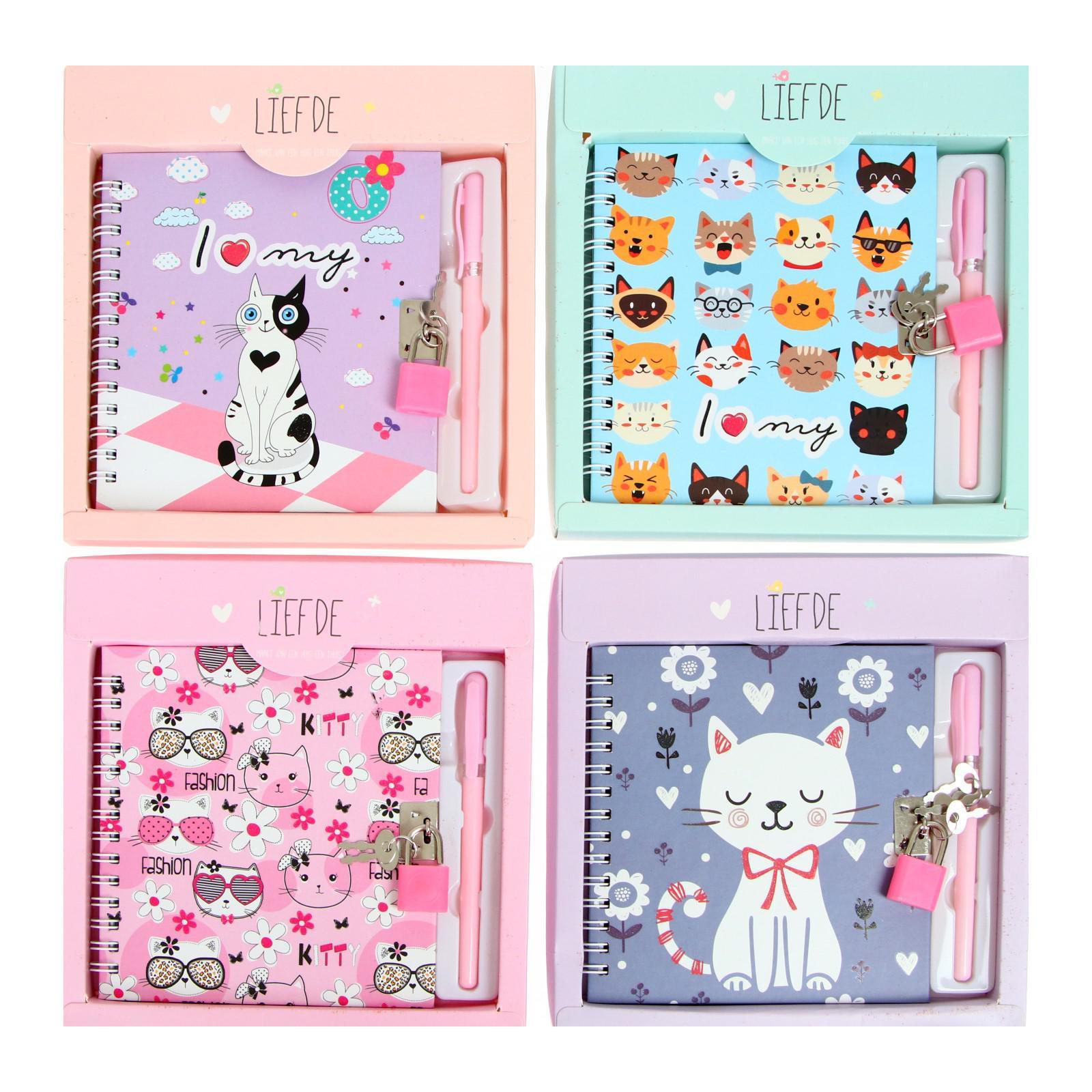 Записная книжка с ручкой и замочком А5, подарочная коробка, 45 листов, в линейку, на гребне, МИКС
