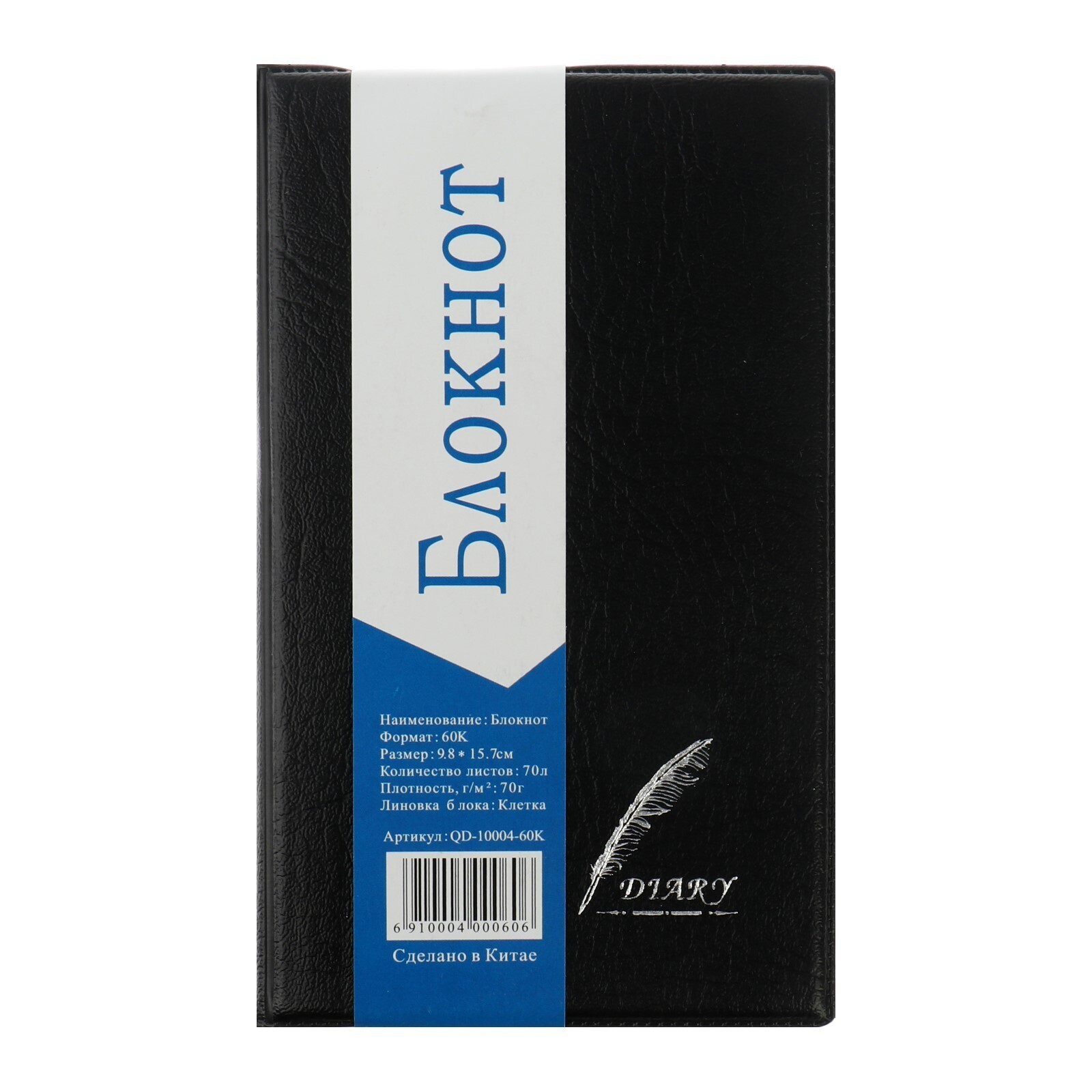 Записная книжка "Перо" А6, 70 листов в клетку, обложка ПВХ, чёрная
