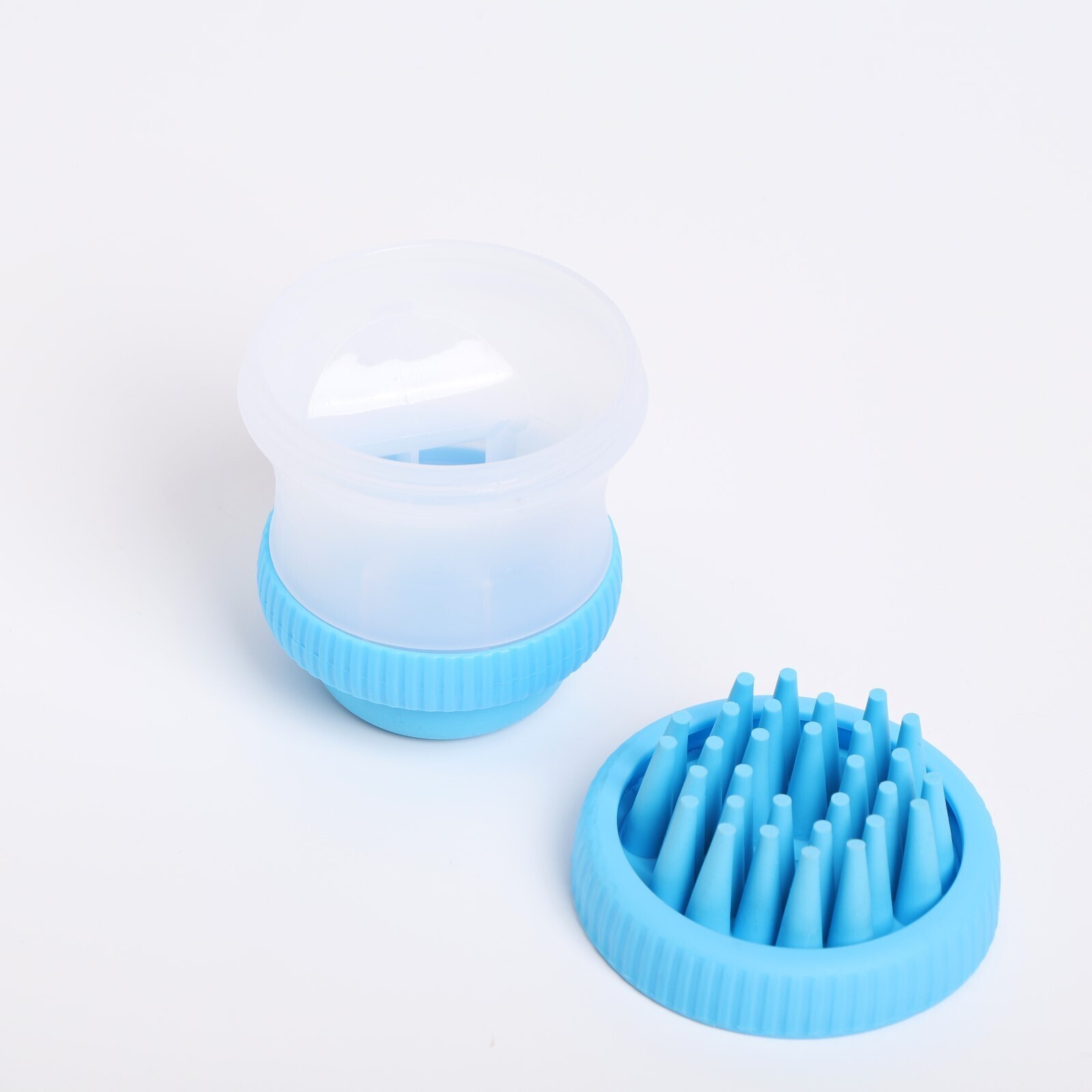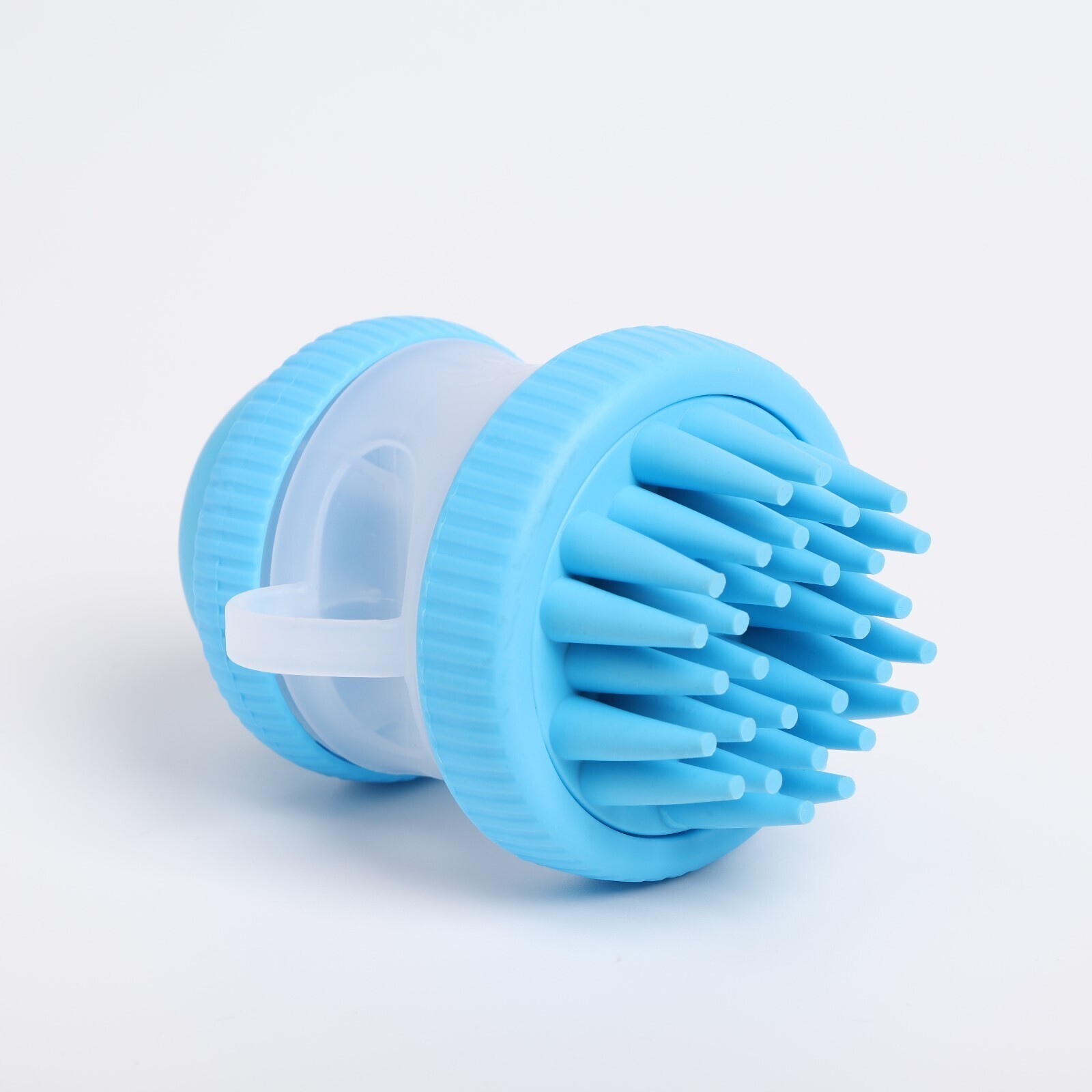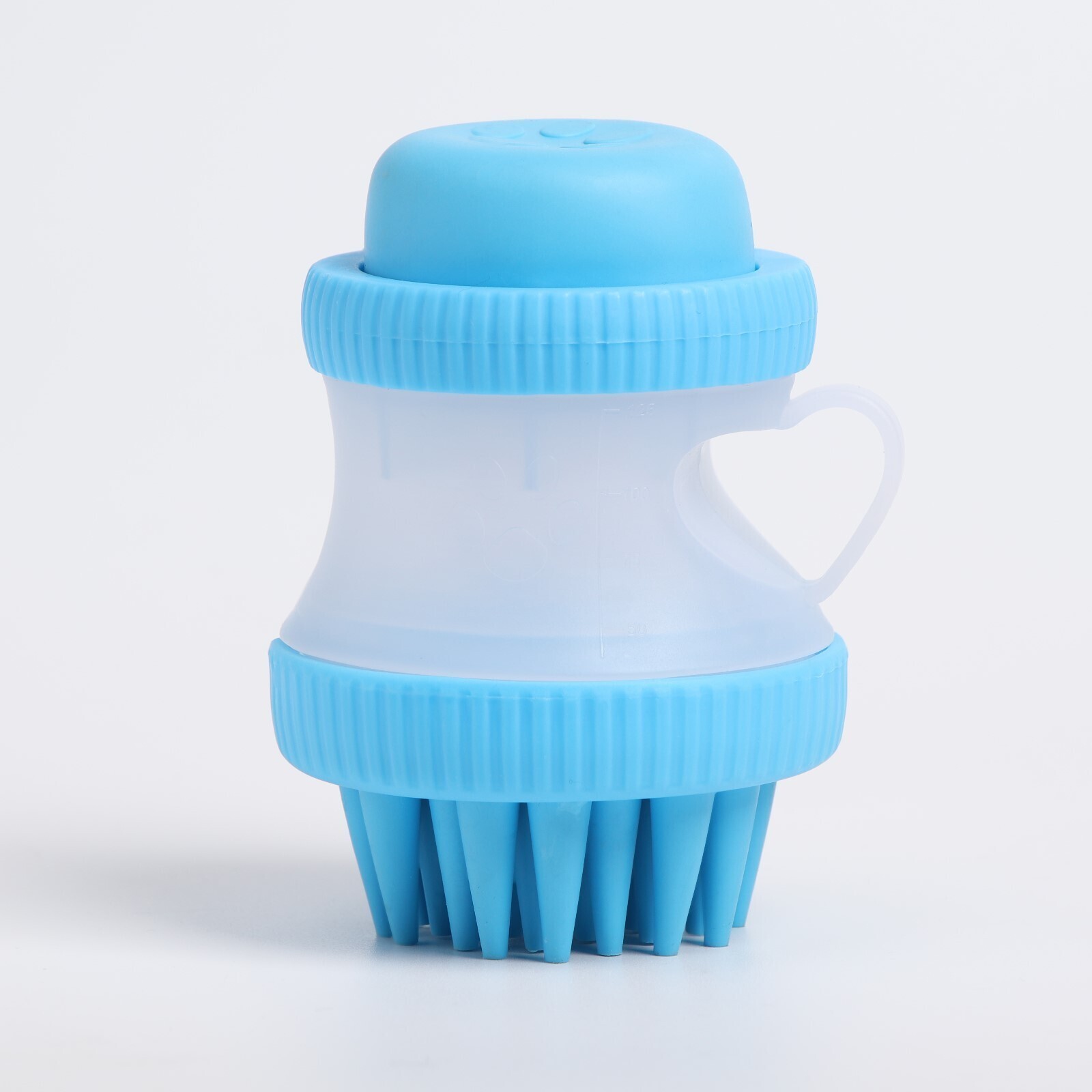 Щётка для мытья и массажа животных Пижон, с емкостью для шампуня, голубая, 101 г