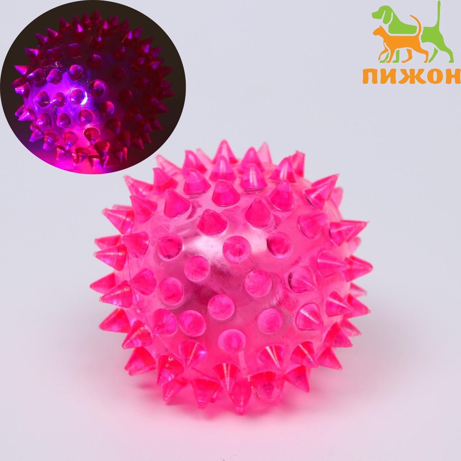 Мяч светящийся для собак средний, TPR, 5,5 см, розовый