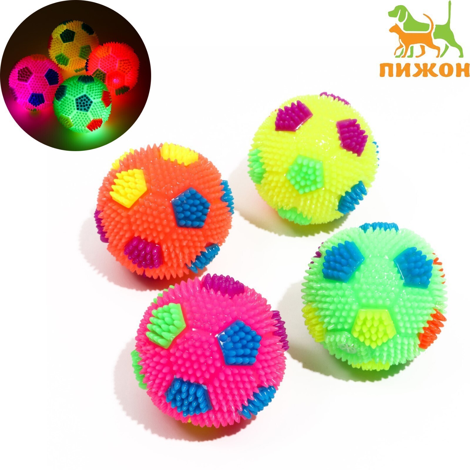 Мячик светящийся для собак "Футбол", TPR, 6,5 см, микс цветов