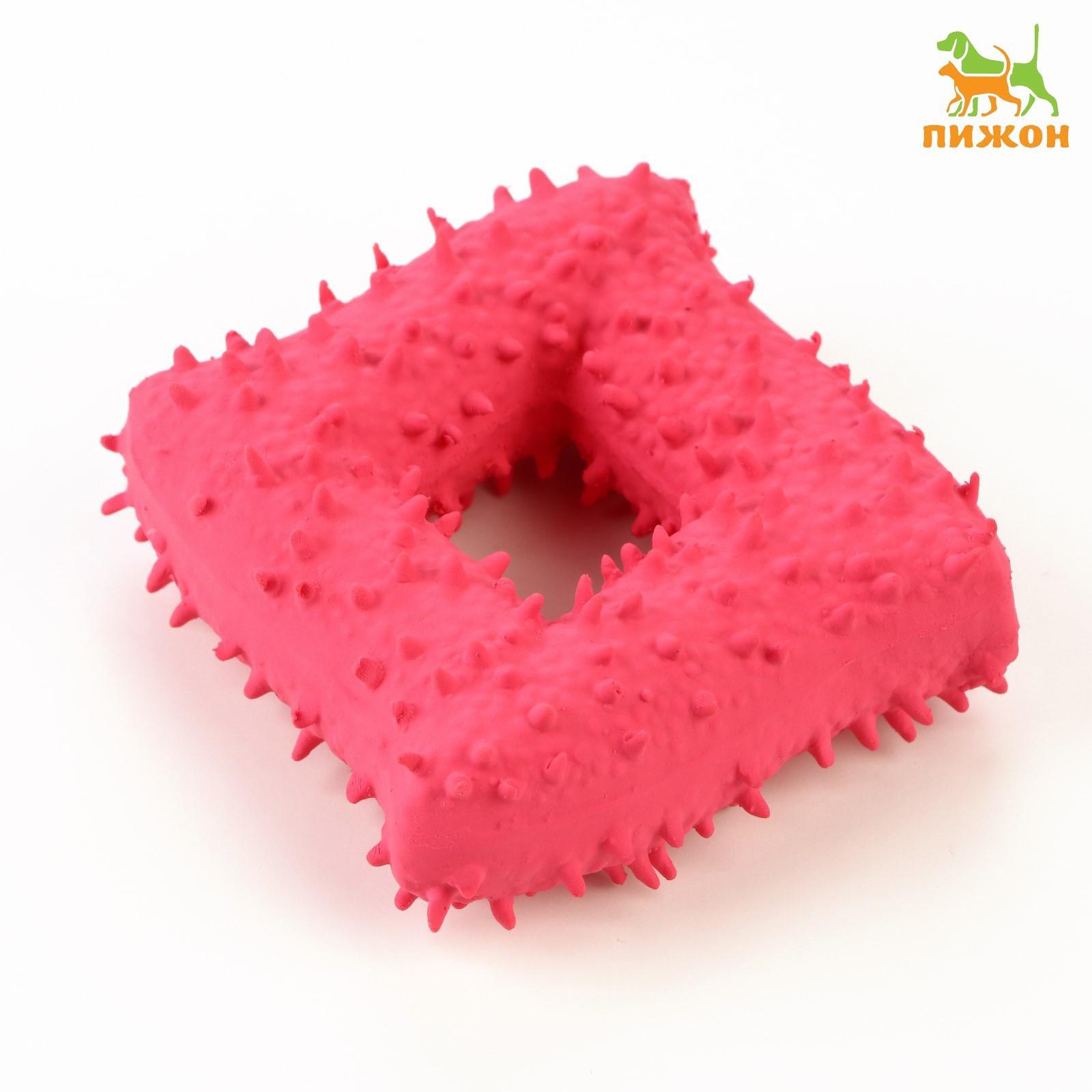Игрушка пищащая для собак из латекса "Квадрат", 8,5 х 8,5 см, розовая