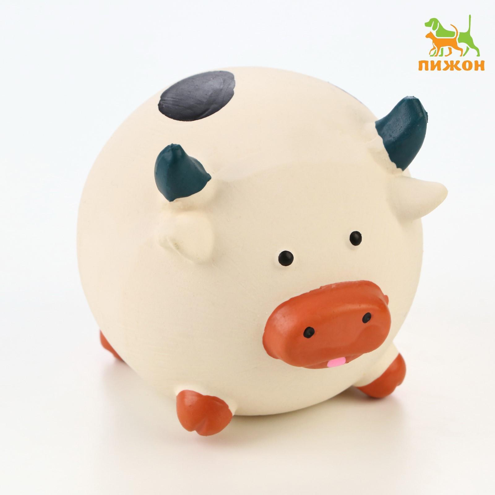 Игрушка пищащая для собак из латекса "Корова-Мяч", 8 см, белая