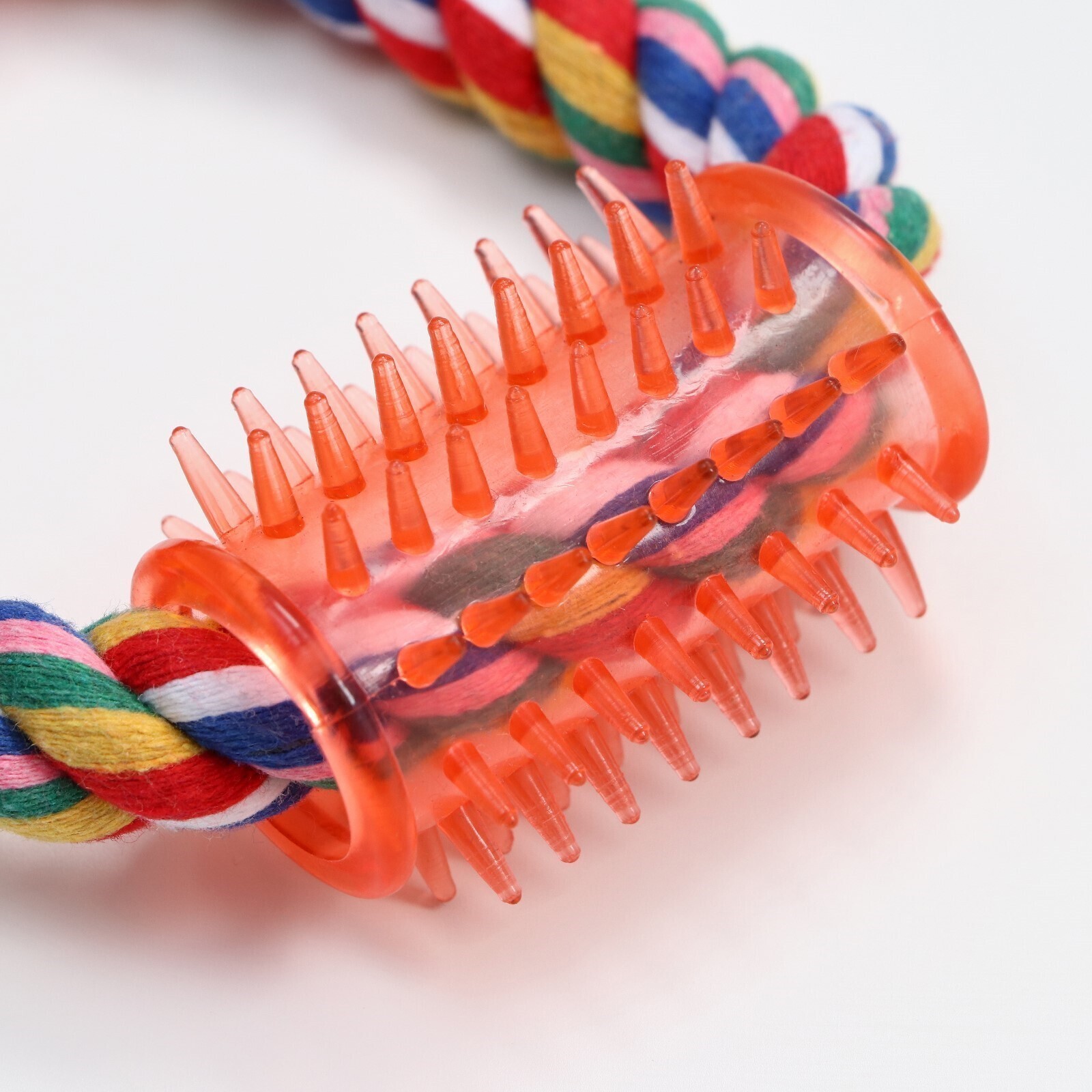 Игрушка тренировочная канатная "Восьмерка с зубочисткой", до 27 см, до 140 г, микс цветов