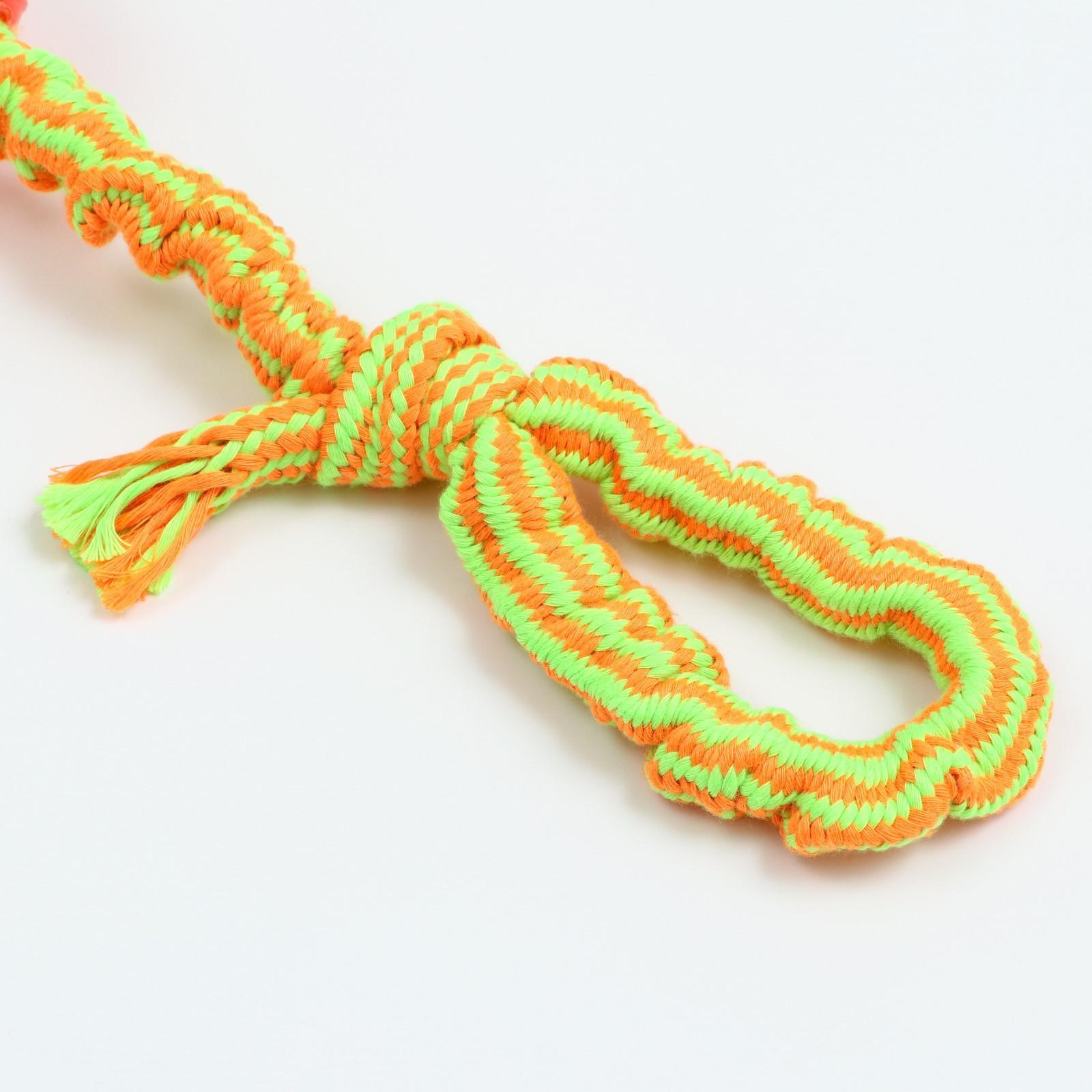 Хлопковый канат с узлами чистит зубы собаки во время игры, что способствует сохранению здоровья полости рта.