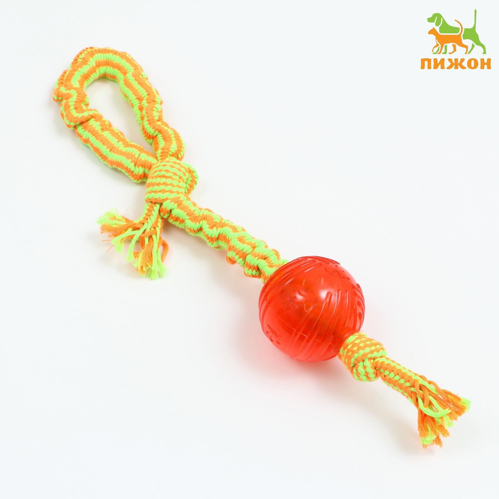 Игрушка канатная "Верёвка-пружинка" до 38 см, до 86 г, красный шар/красно-жёлтый канат