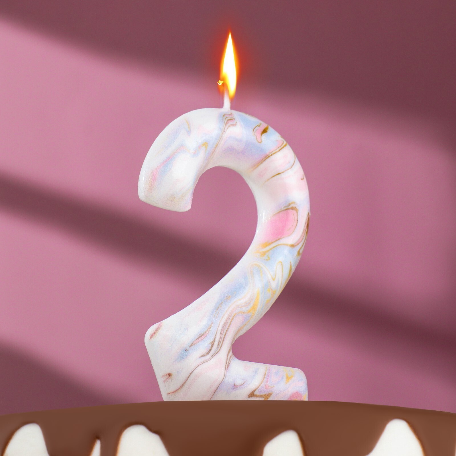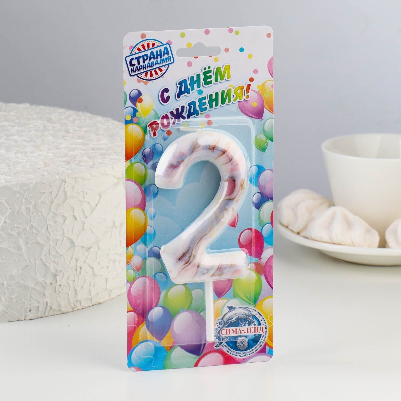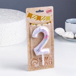 Свеча в торт "Белый мрамор", цифра "2", ГИГАНТ, 12,5 см