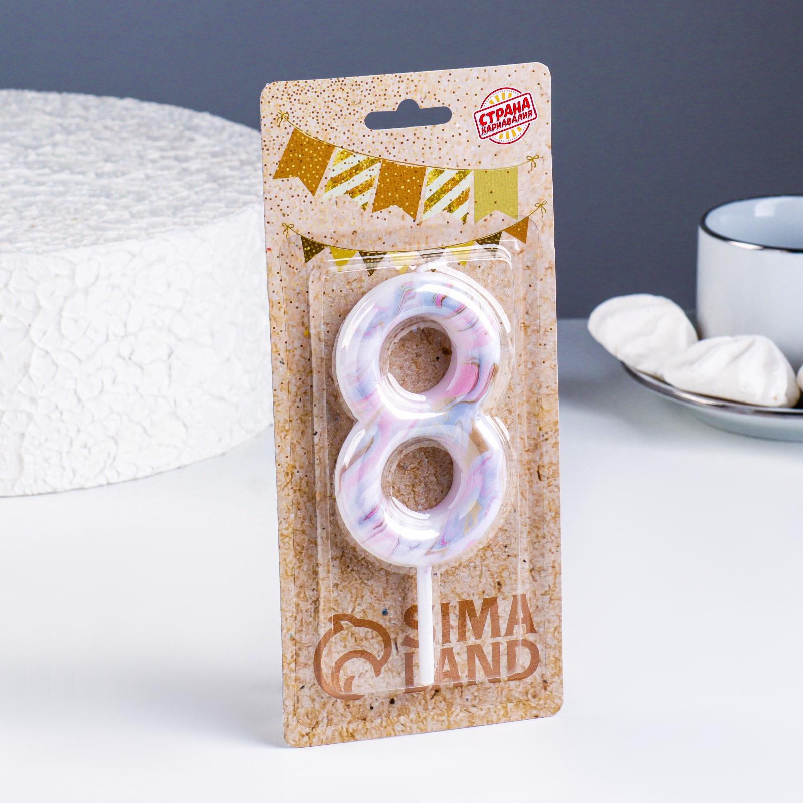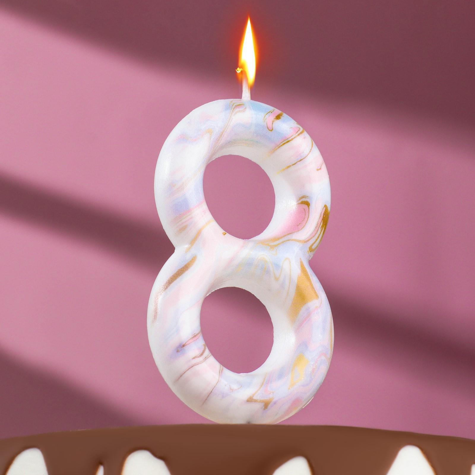 Свеча в торт "Белый мрамор", цифра "8", ГИГАНТ, 12,5 см