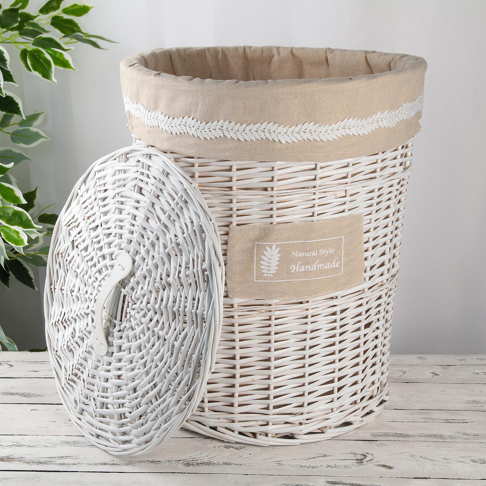 Корзина для белья плетёная Доляна Natural style, 46×46×56,5 см, цвет белый