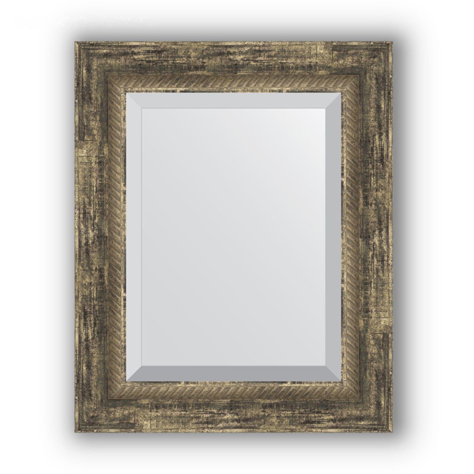 Зеркало с фацетом в багетной раме - старое дерево с плетением 70 мм, 43 х 53 см, Evoform