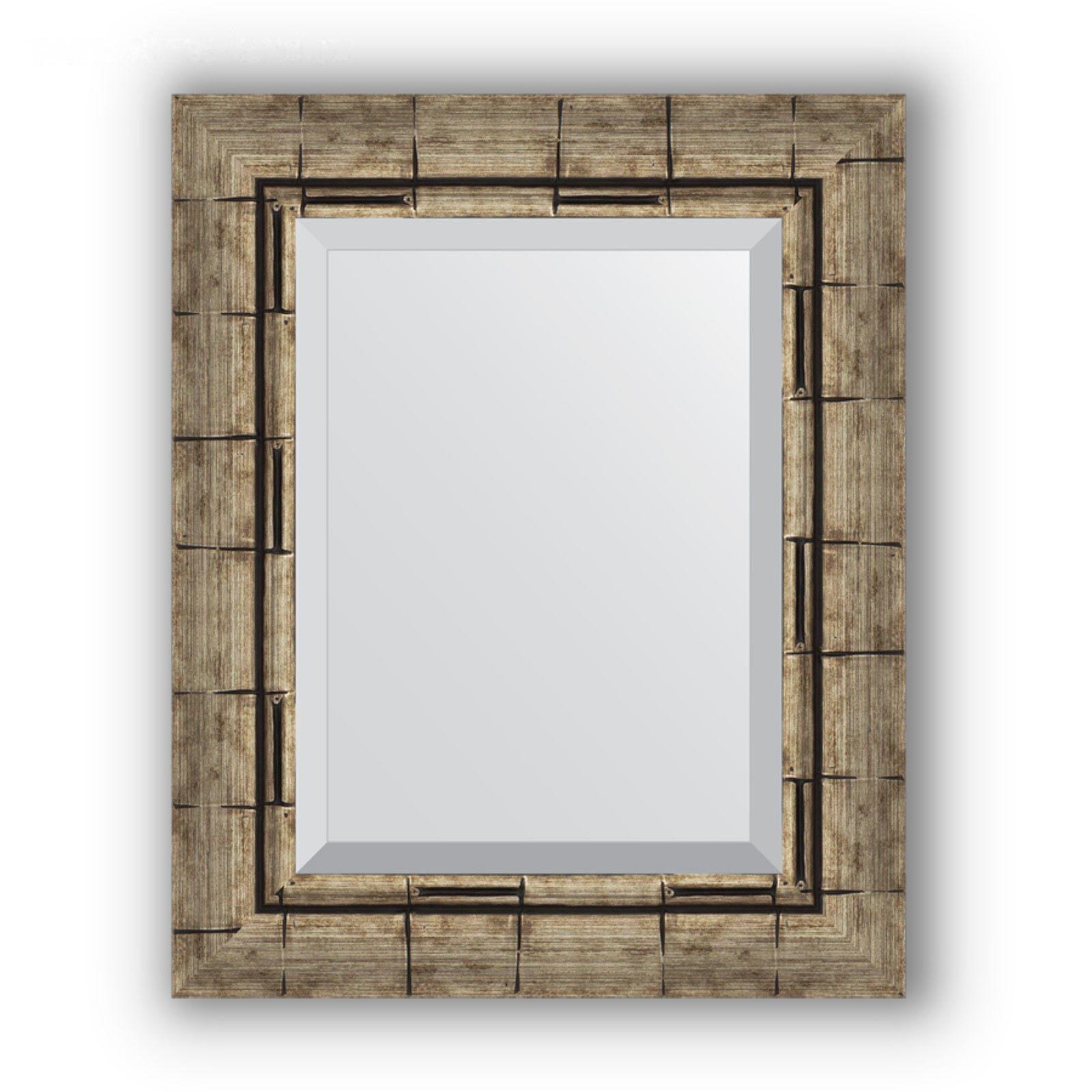 Зеркало с фацетом в багетной раме - серебряный бамбук 73 мм, 43 х 53 см, Evoform