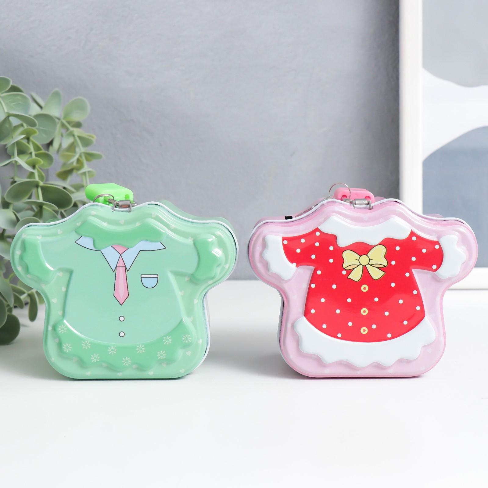 Копилка металл с замочком "Детская одёжка" МИКС 11х6,5х8,5 см