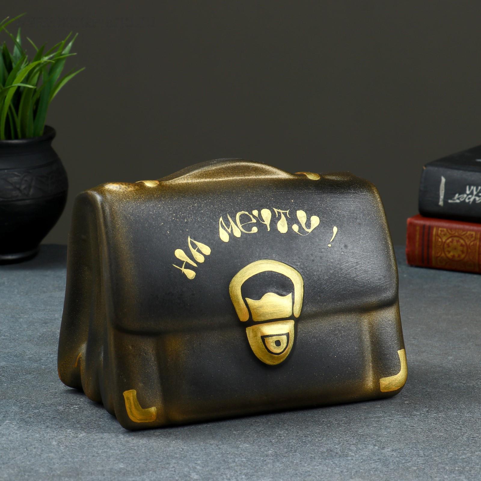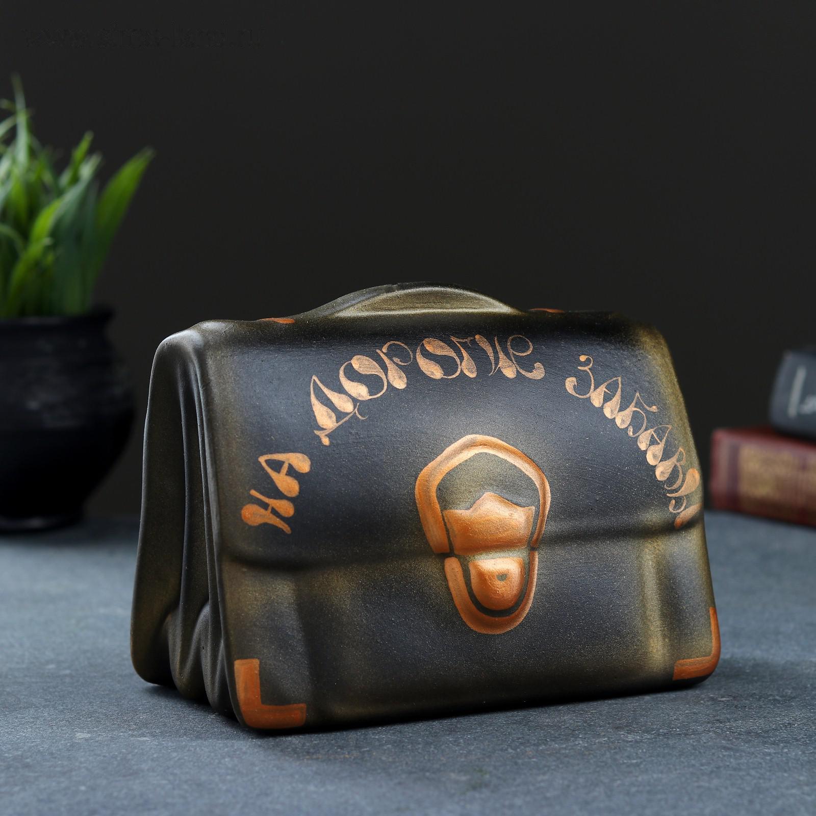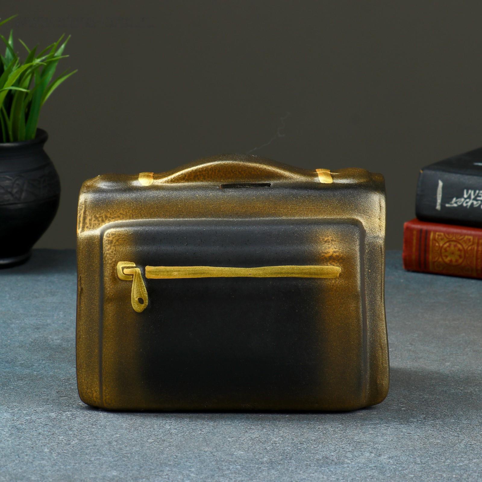 Копилка "Барсетка" чёрная,12х18х14см МИКС