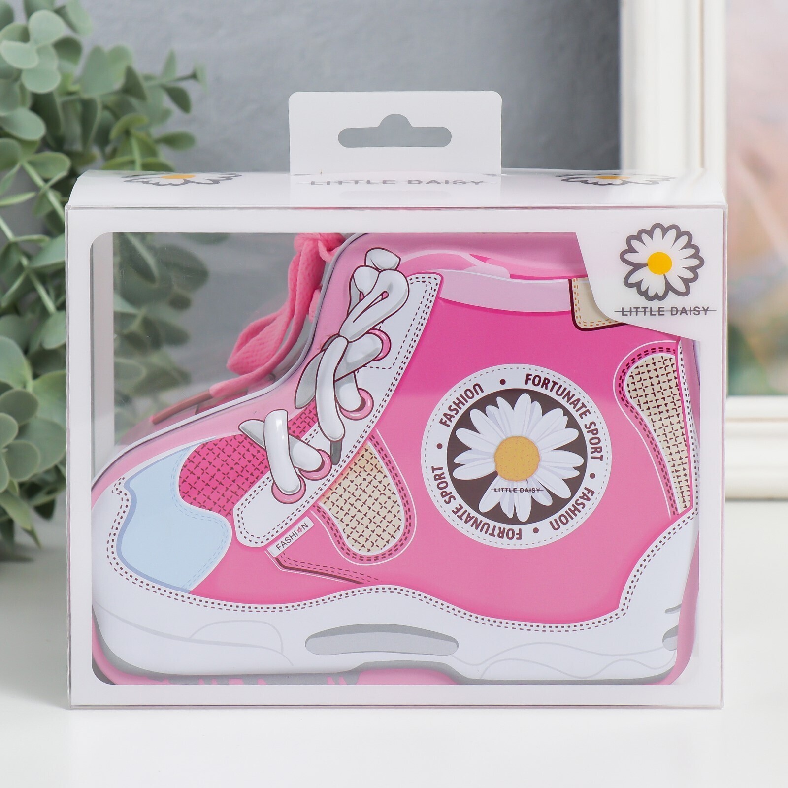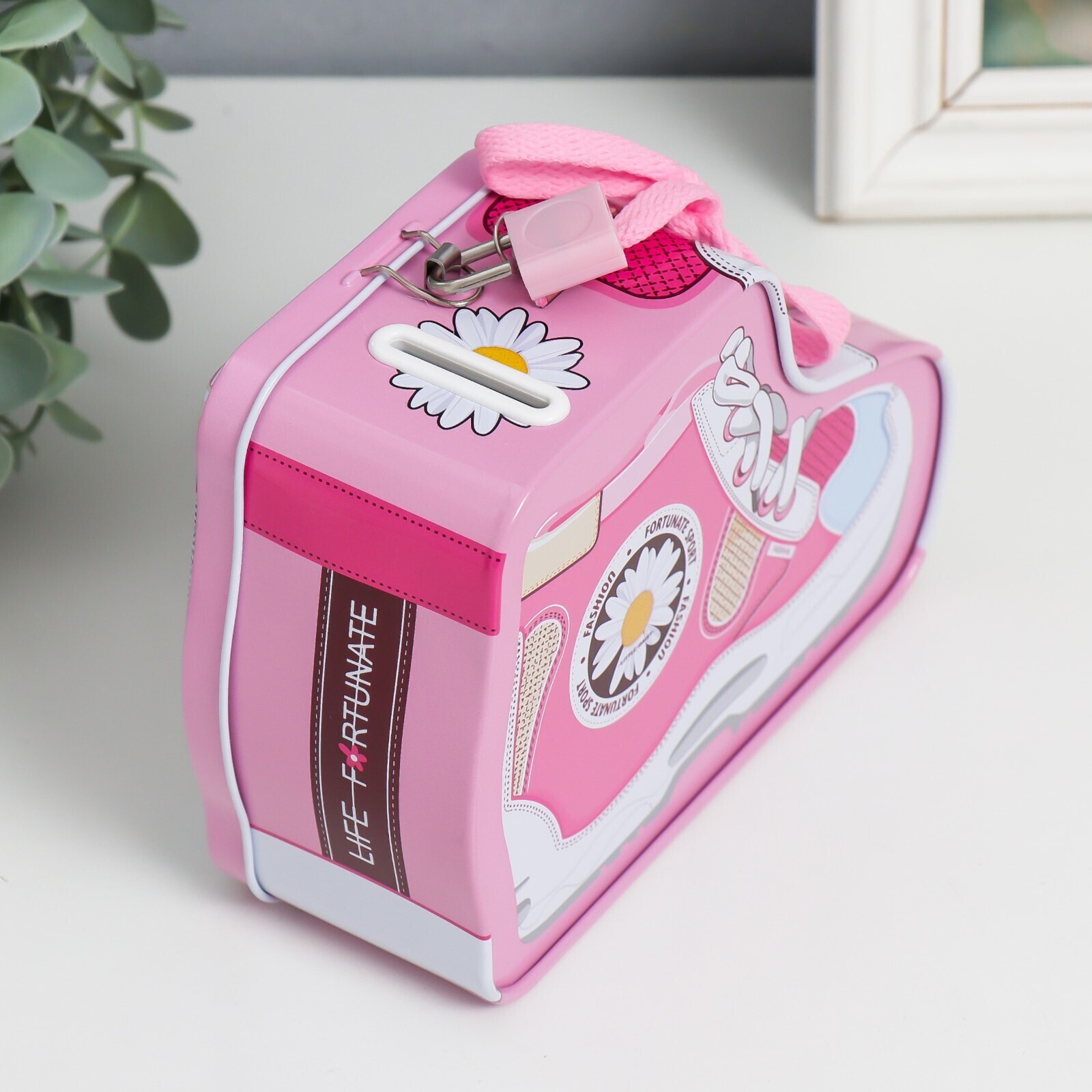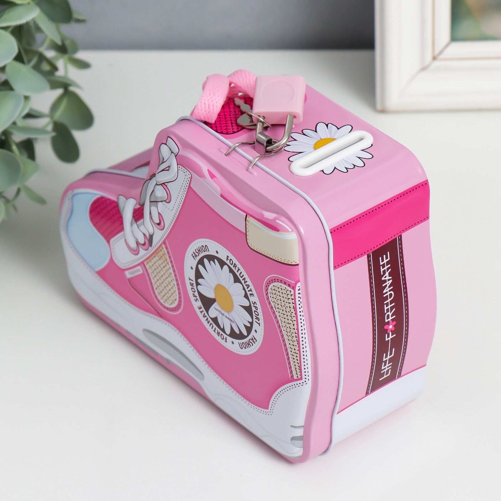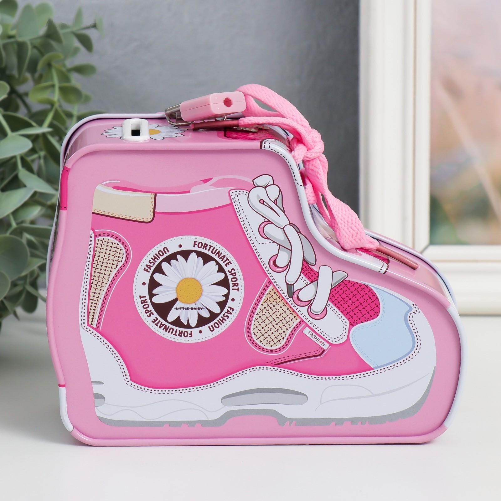 Копилка металл с замочком "Кед с ромашкой" МИКС 7х16х12 см