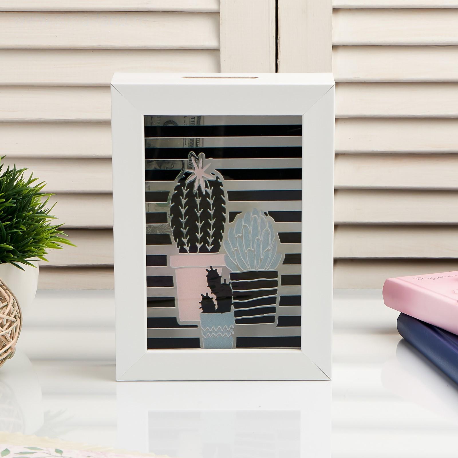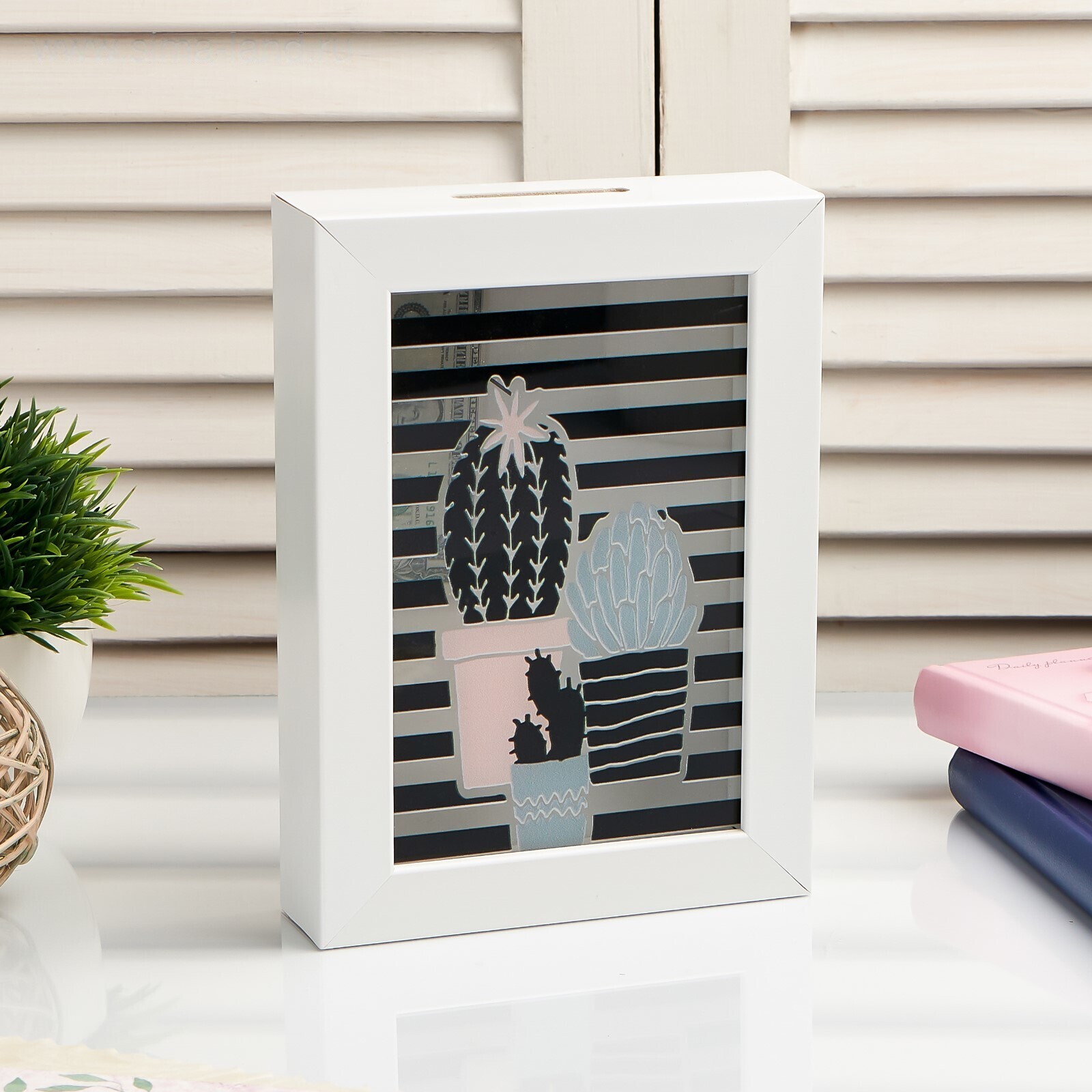 Копилка интерьерная пластик "Кактусы и полоски" 17х12х3,8 см