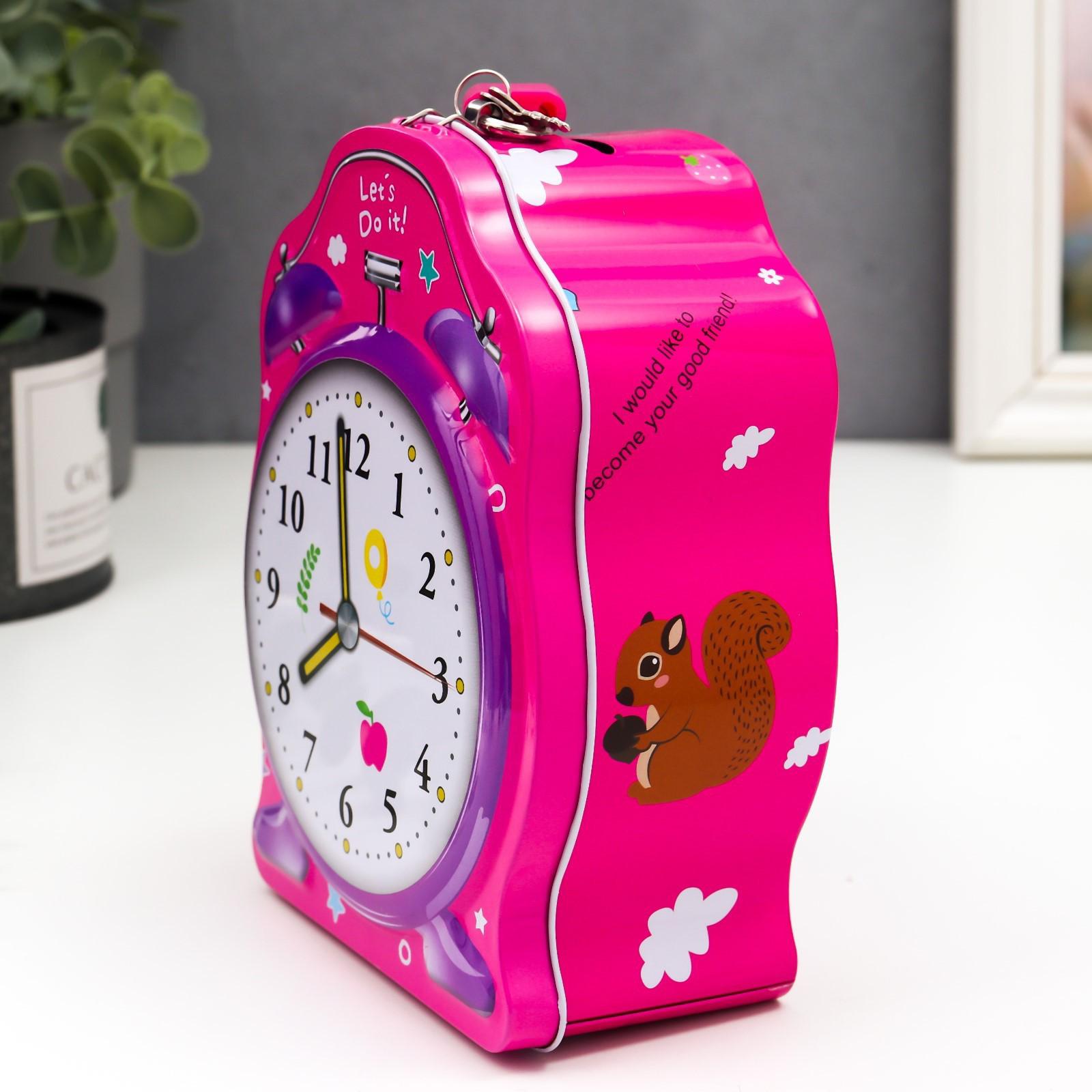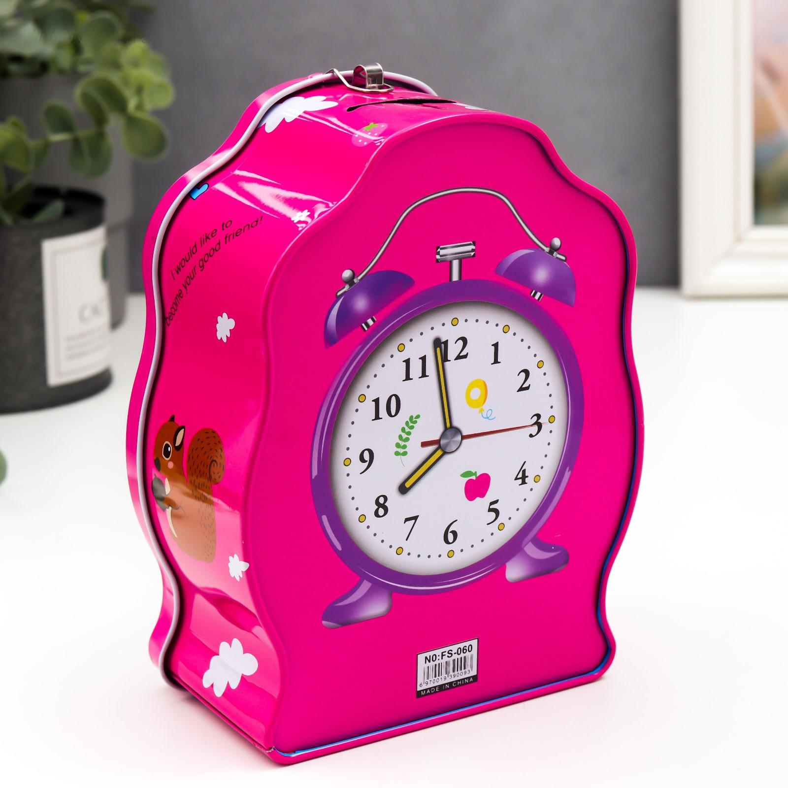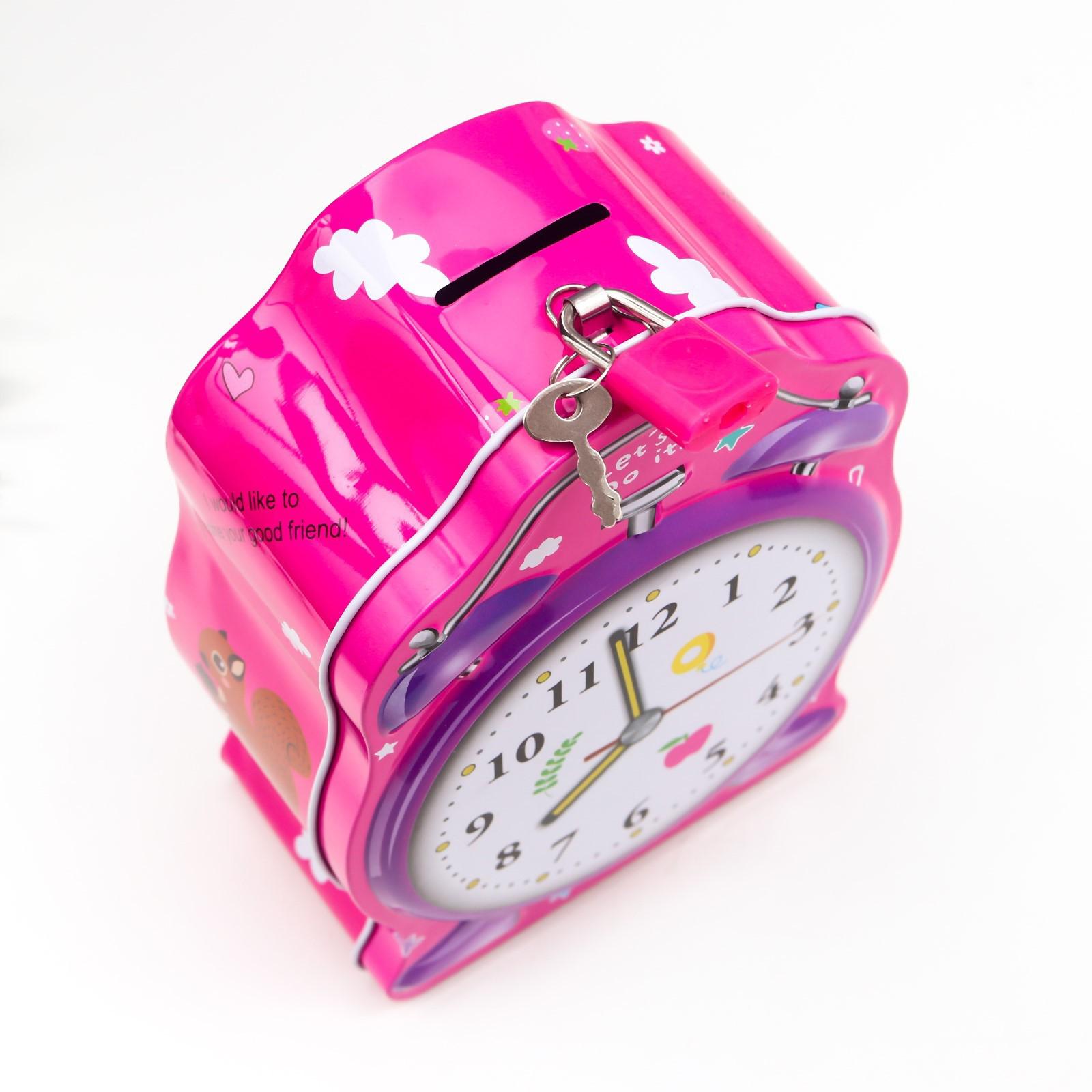 Копилка металл "Будильник" с замком и ключами МИКС 16х12х6 см