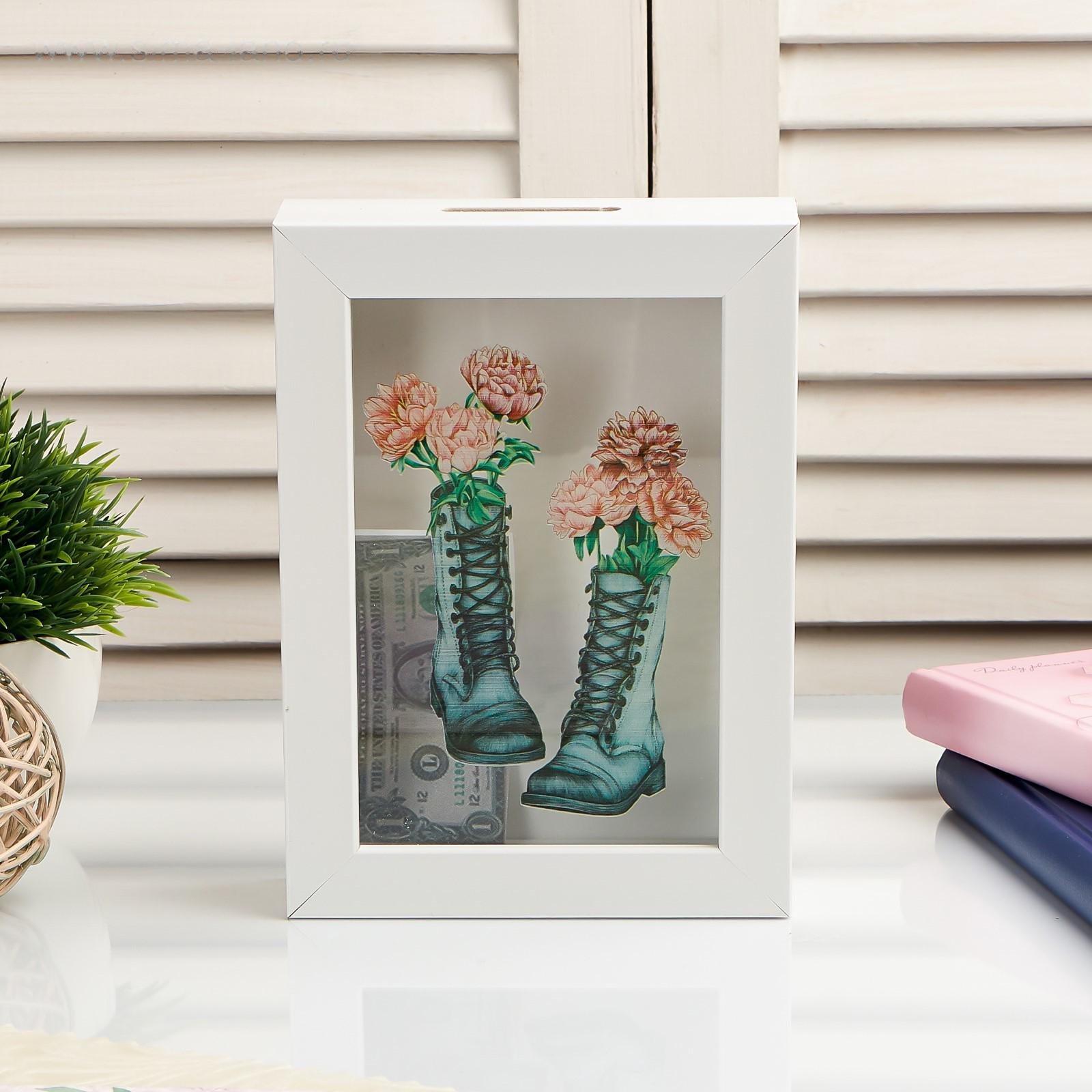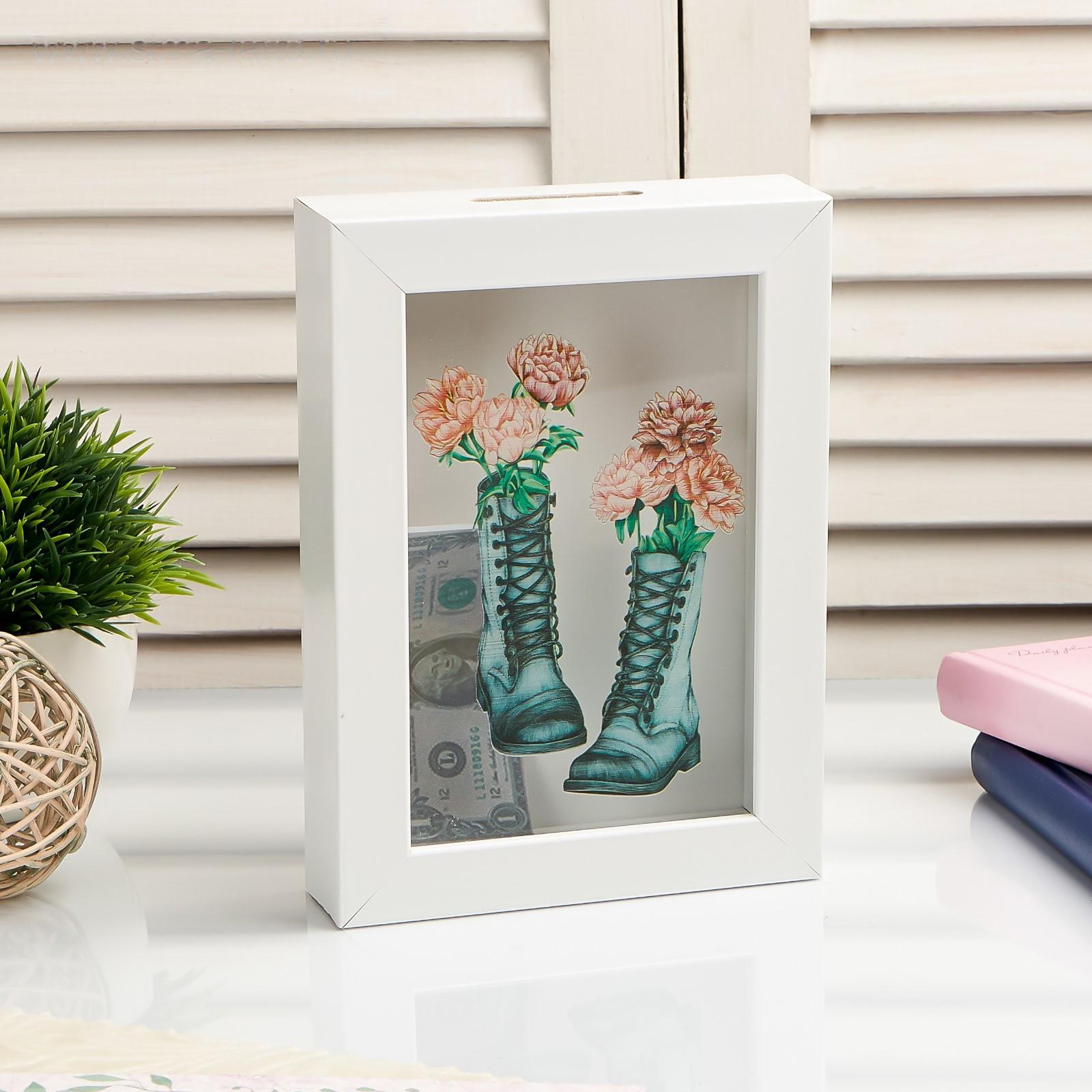 Копилка интерьерная пластик "Пионы в ботинках" 17х12х3,8 см