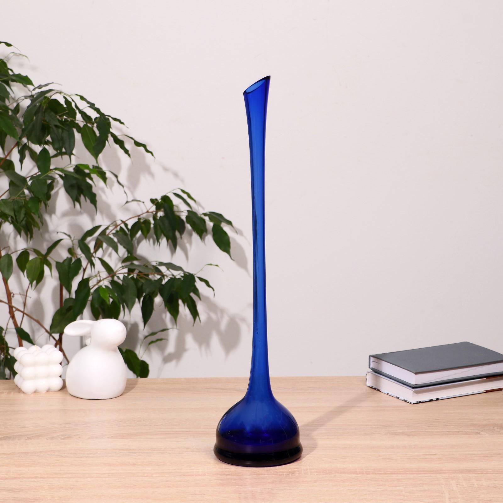 Ваза С-81/3 из синего стекла (без декора) h=51см, d горлышка=3х2.5см, d основания=12см
