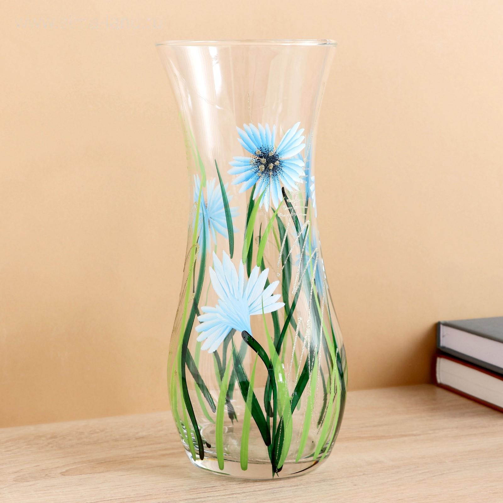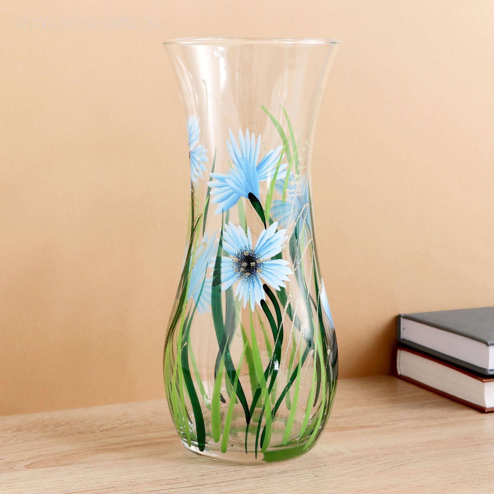 Ваза "Васильки" 26см оригинальной формы выглядит элегантно и стильно. Впишется в любой интерьер, подойдет любителям минимализма и стиля модерн. В стеклянной вазе особенно хорошо смотрятся строгие однотонные букеты. Изделие расписано васильками - символом постоянства, верности, простоты и нежности.