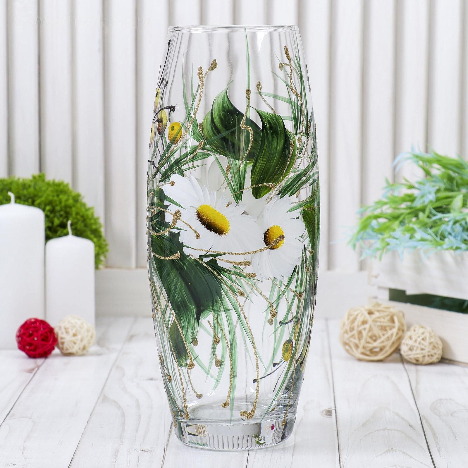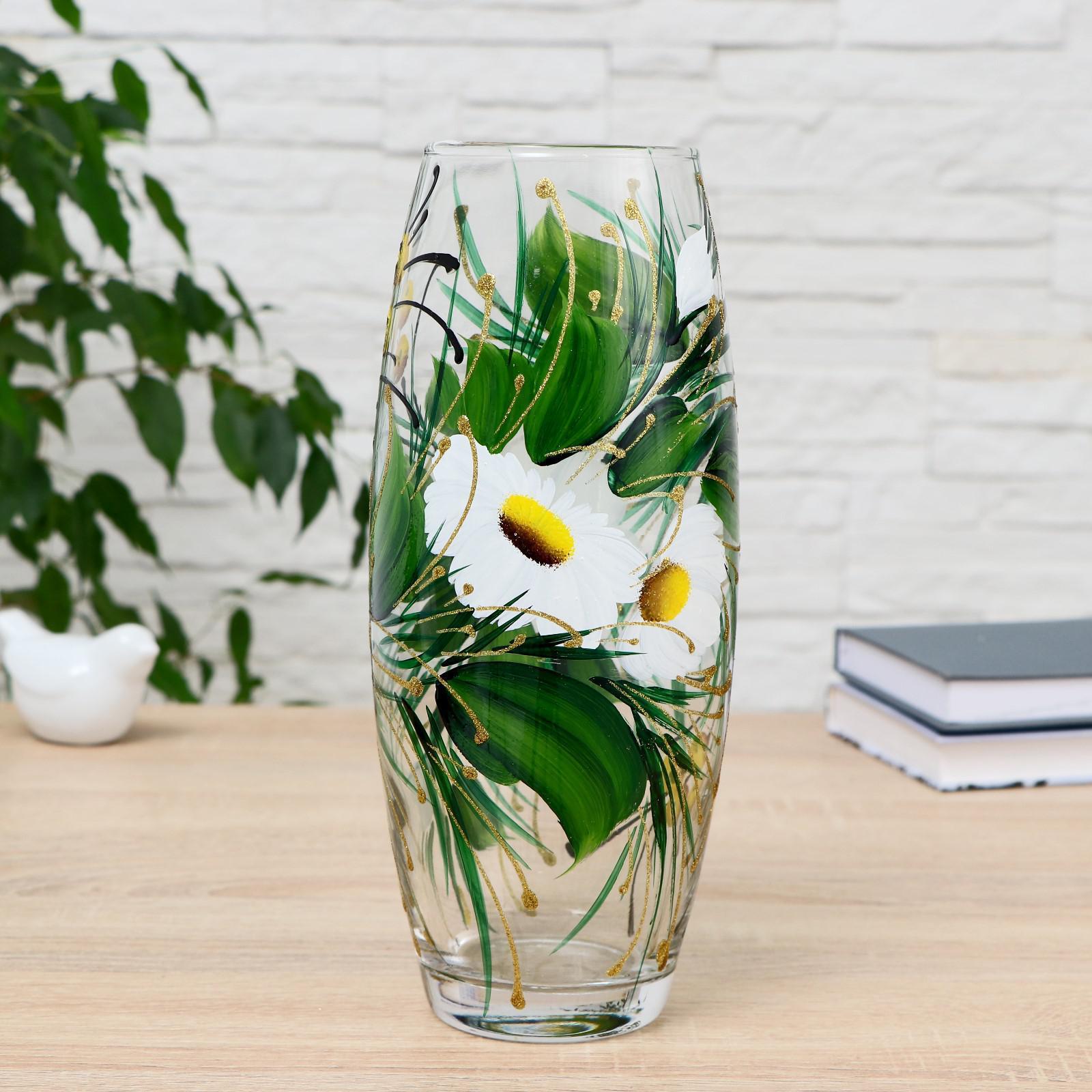 Ваза "Утро" овал d-7,5см; 10х26 см оригинальной формы выглядит элегантно и стильно. Впишется в любой интерьер, подойдет любителям минимализма и стиля модерн. В стеклянной вазе особенно хорошо смотрятся строгие однотонные букеты. Изделие расписано ромашками - символом доброты, скромности, невинности, нежности, искренности чувств, юности и романтичности. Станет идеальным подарком на любое торжество.