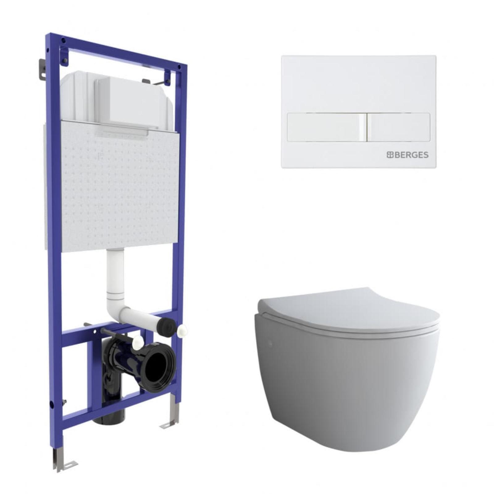 Комплект инсталляции Berges NOVUM 043263, унитаз, клавиша, сиденье дюропласт, белый